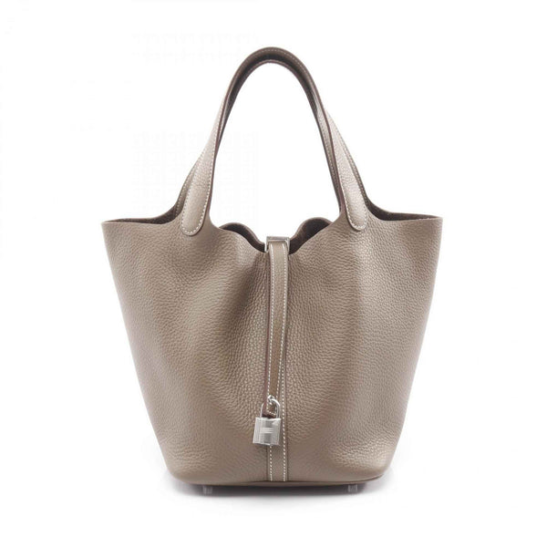 Hermes Hermès Picotin Lock MM Etoupe Handbag in Taurillon Clemence Leather, Beige, for Women