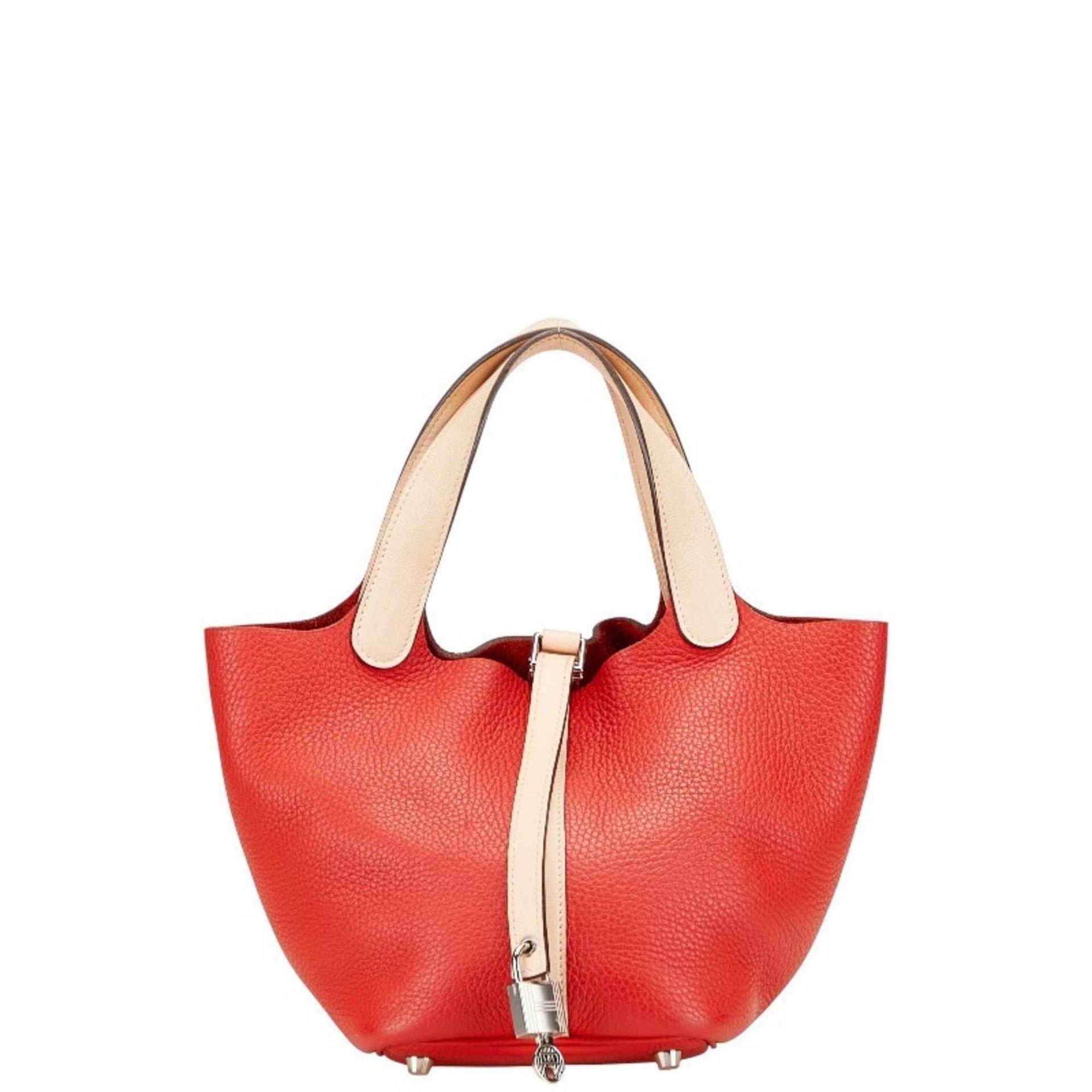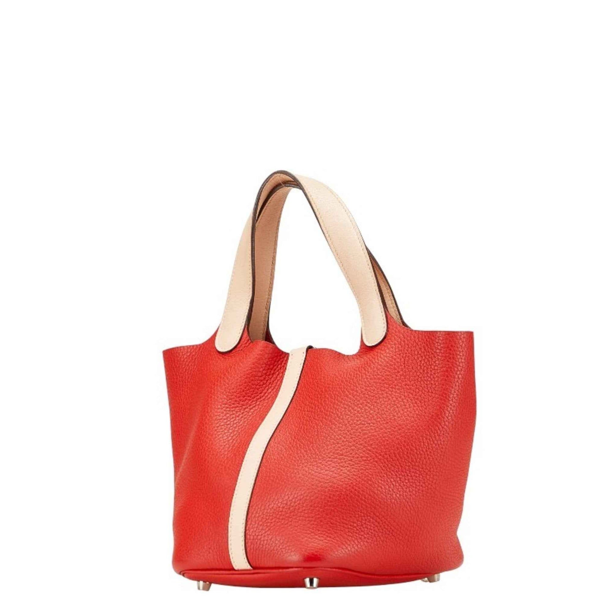 Hermes Hermès Picotin Lock Touch PM Handbag in Rouge Tomato, Rose Eglantine, Taurillon Clemence, and Swift Leather. Women\'s.