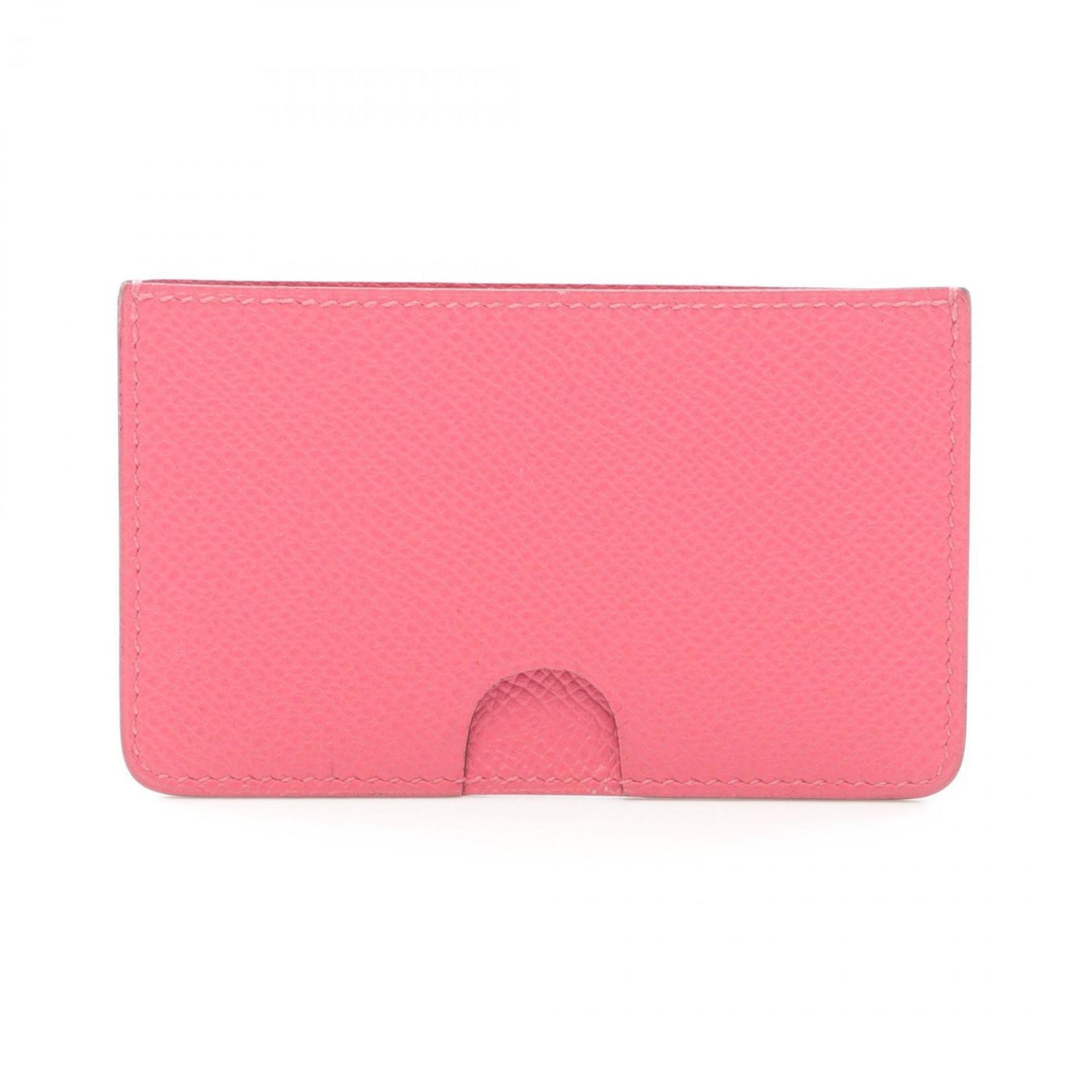 Hermes Hermès Porquerolle business card holder/card case, accessory, leather, Epsom women\'s, pink