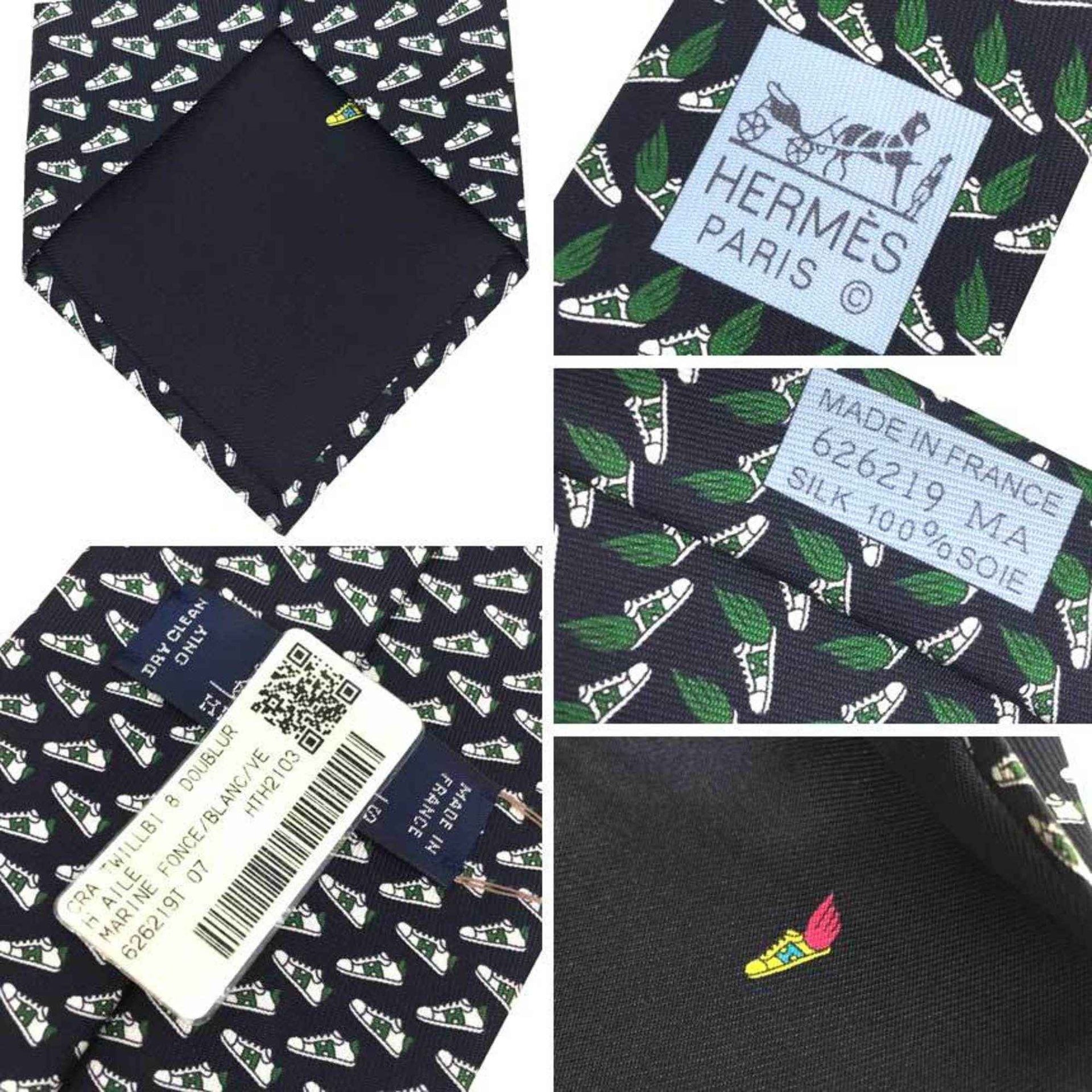 Hermes HERMES Tie 626219T 07 H AILE Sneakers Silk MARINE FONCE/BLANC/VE Navy Men\'s Unused