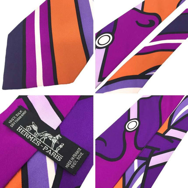 Hermes HERMES tie CRAVAT EN CARRE Quadrige horse 100% silk purple men\'s