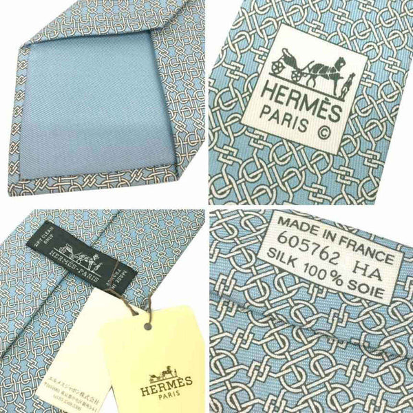Hermes HERMES tie PELE MELE 605762T 07 chain pattern light blue CIEL/BLANC unused men\'s