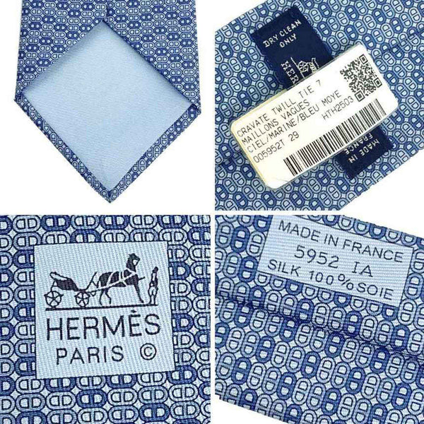 Hermes HERMES Tie Silk Twill Chaine d\'Ancre CRAVATE TWILL TIE 7 MAILLONS VAGUES H0059582T 29 CIEL/MARINE/BLUE MOYEN Blue Men\'s