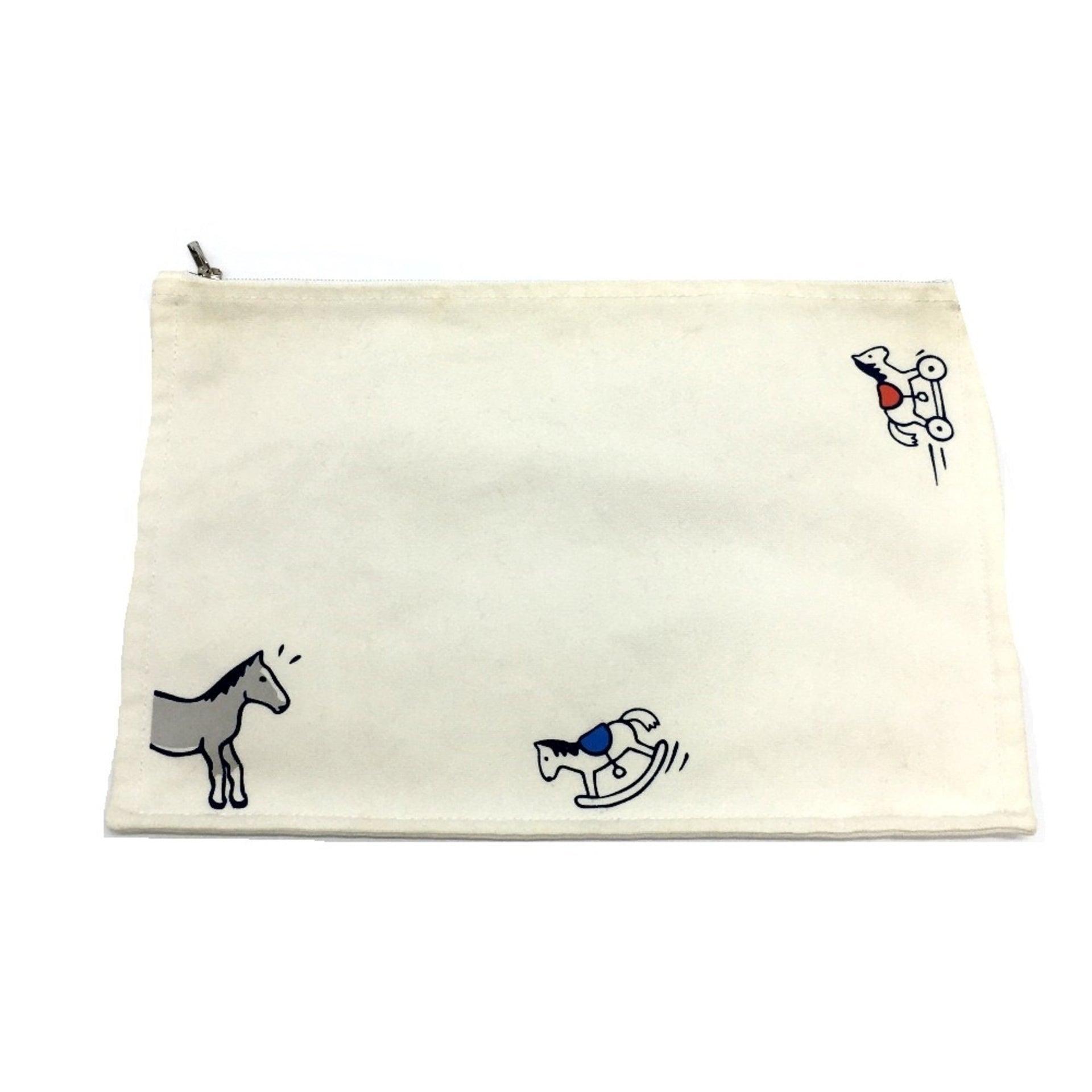 HERMES Horse Adada GM Flat Pouch, Cotton, Unisex, Off-White