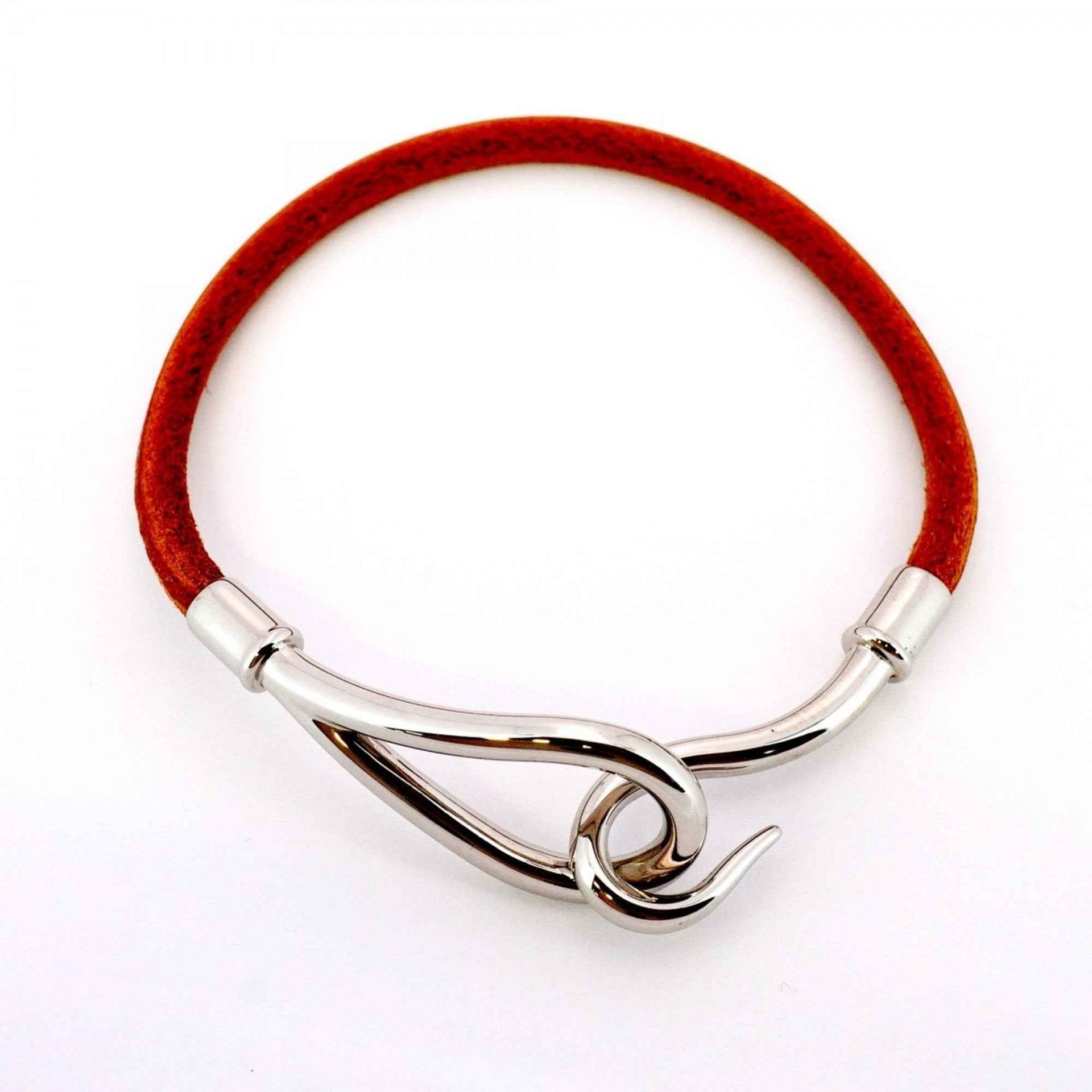 Hermes Jumbo Hook Bracelet, Metal, Leather, Silver, Brown, Women\'s