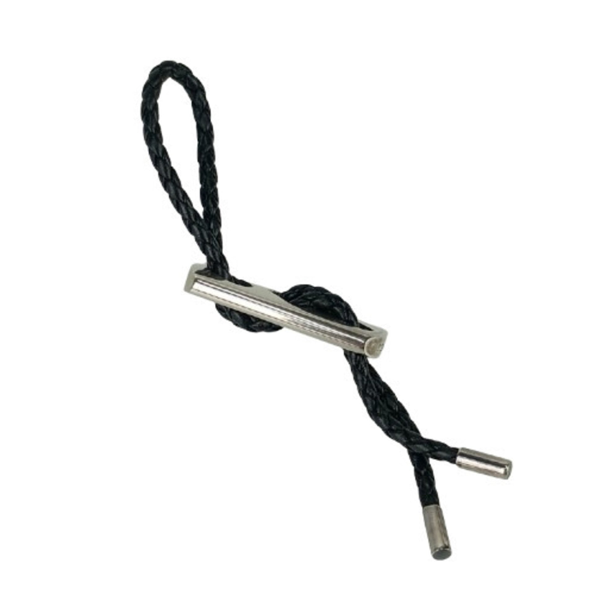 HERMES Keychain Charm - Black Silver Leather Ag925 for Men and Women