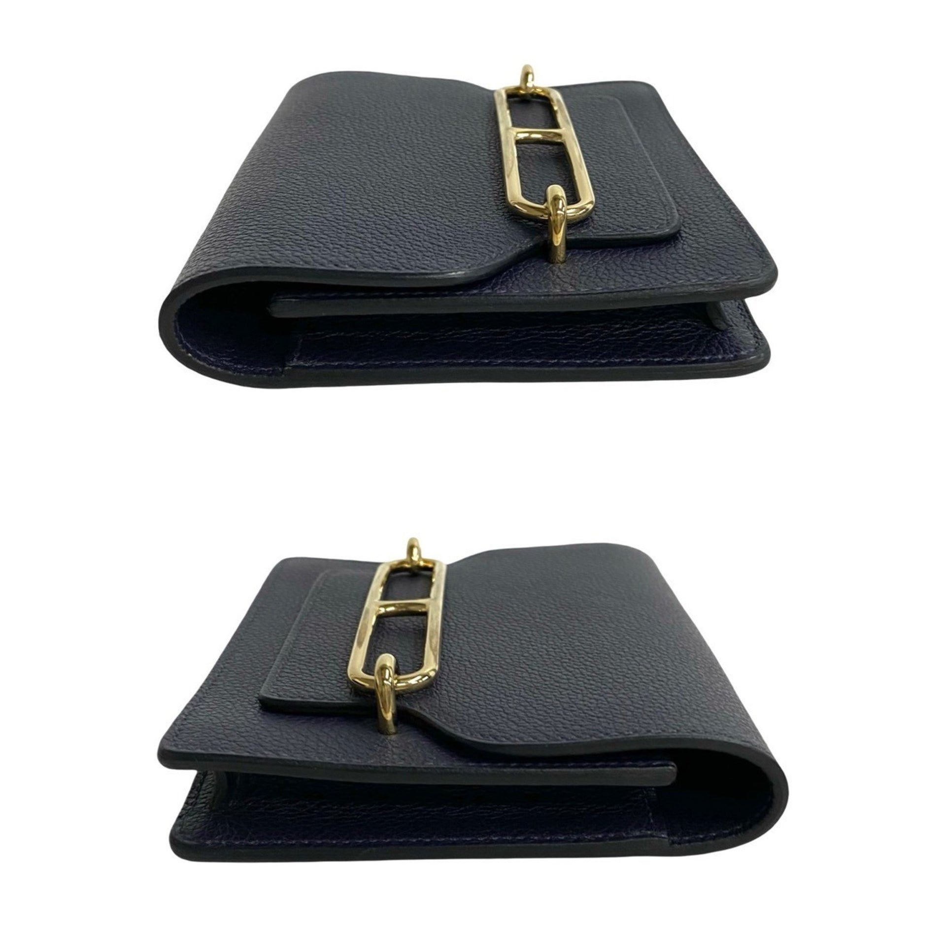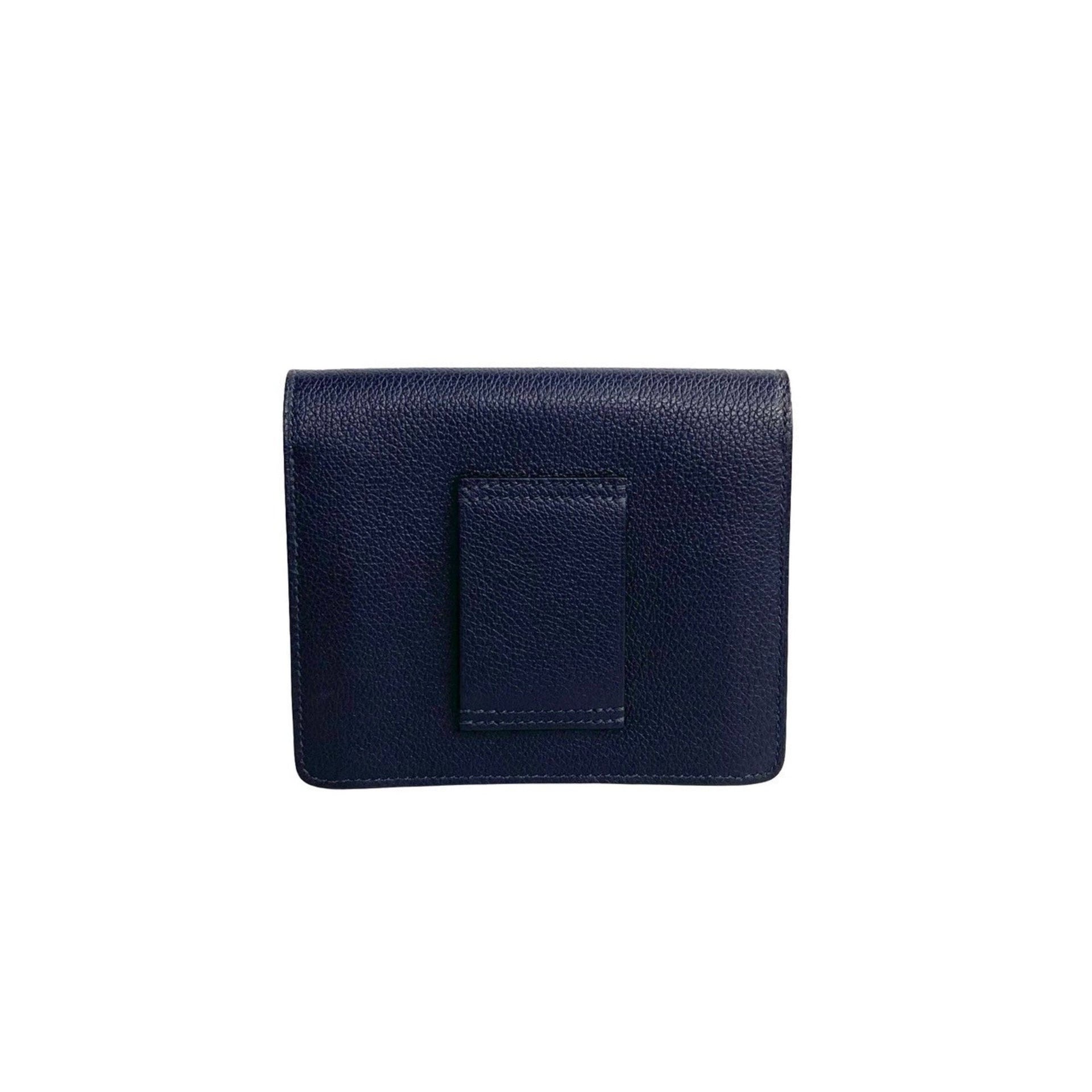 HERMES Lauris Luli Slim Leather Bifold Wallet with Coin Purse, Navy Blue, 18438