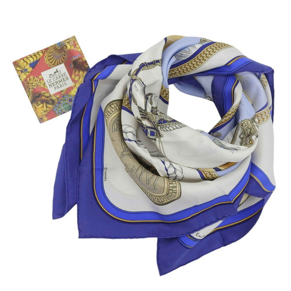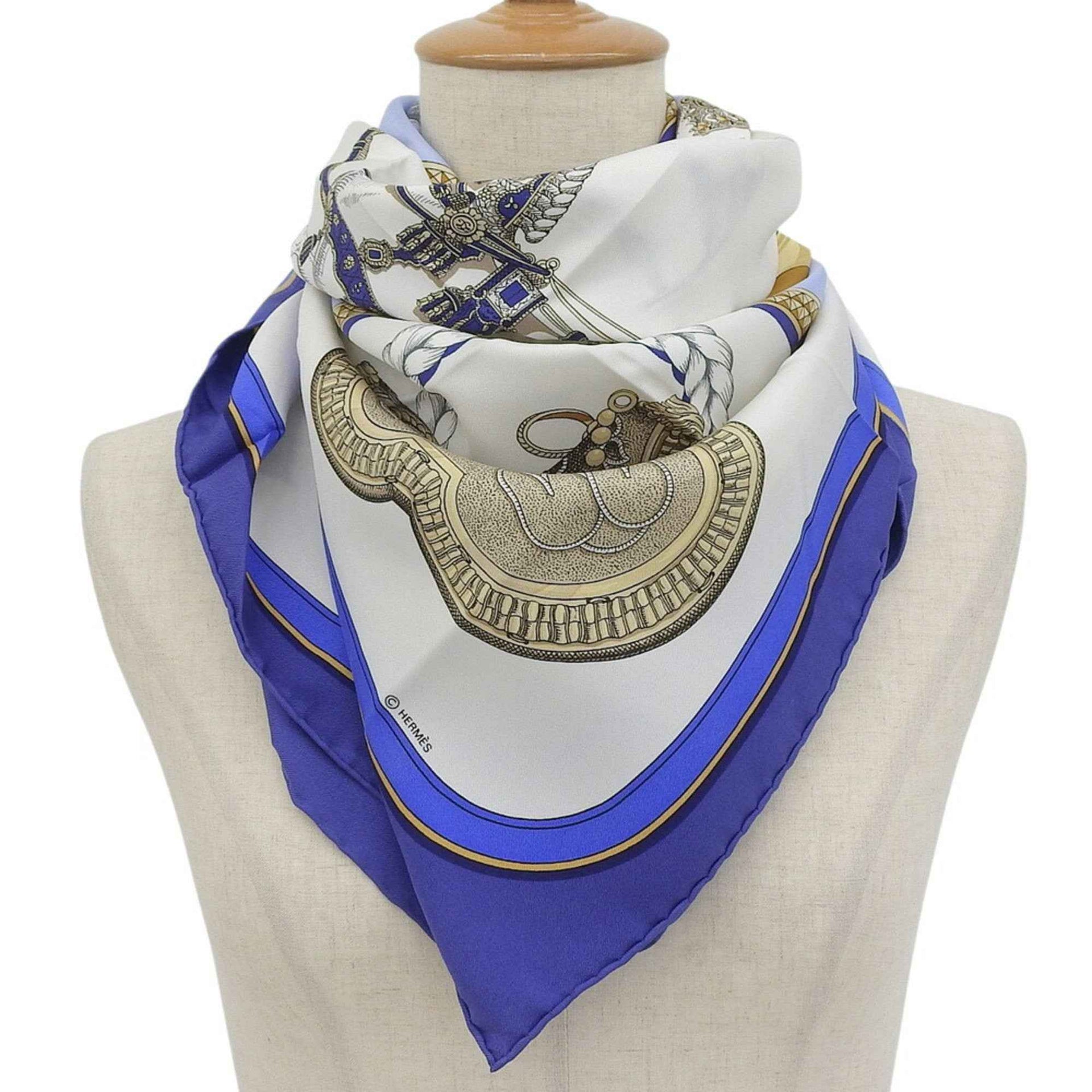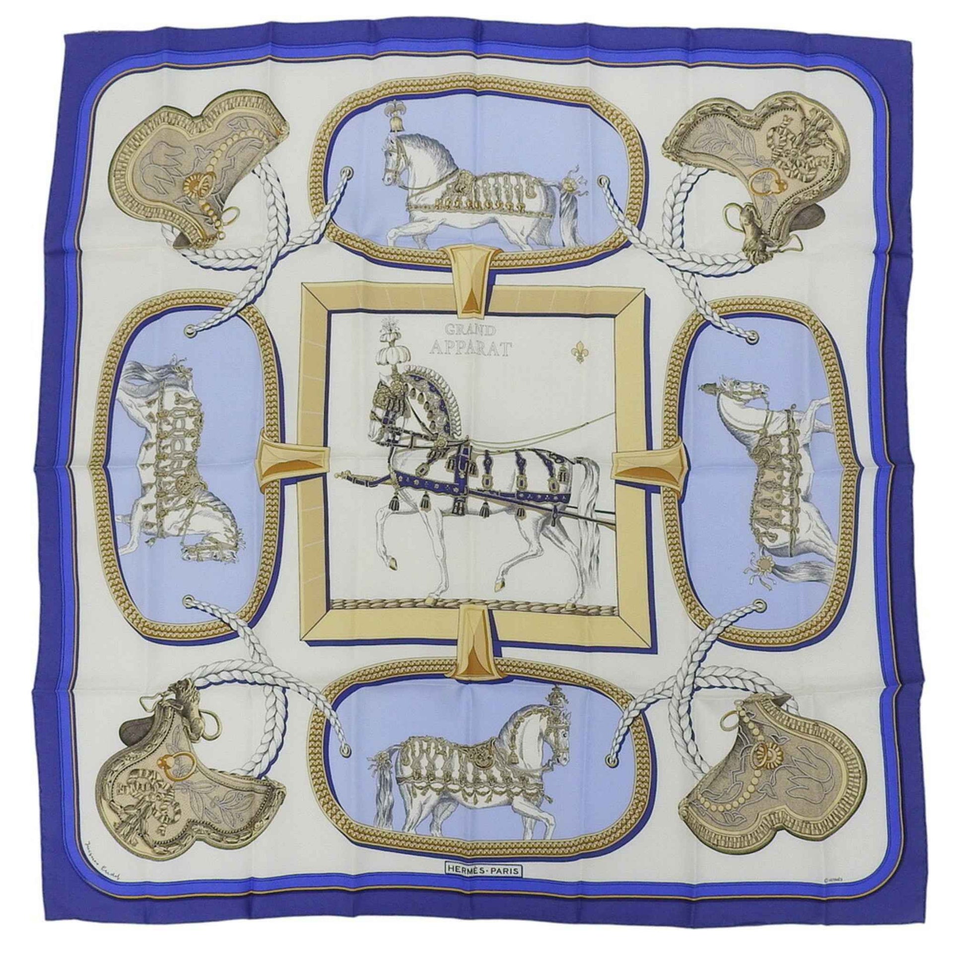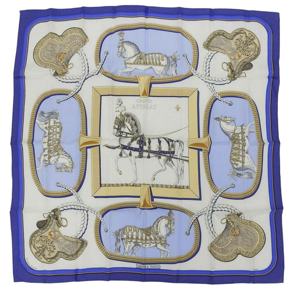 Hermes Like new Hermès Carré 90 Horse in Full Dress, Silk Scarf, Blue and White, Large