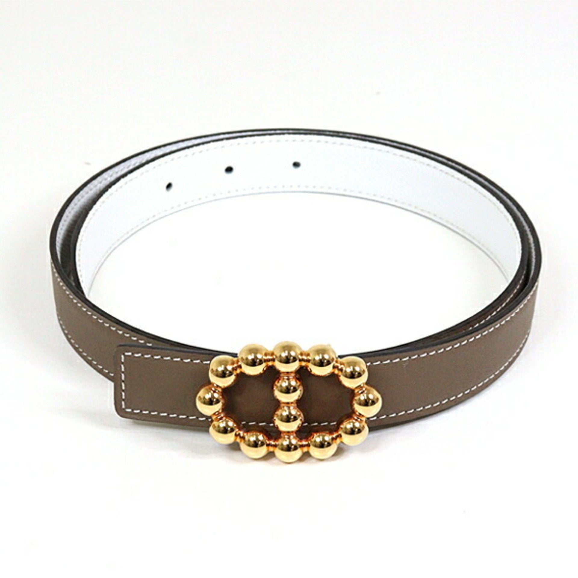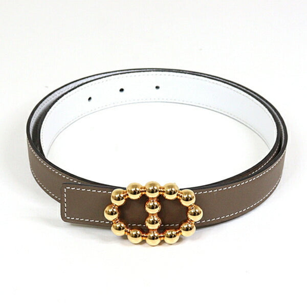 HERMES Maillon Bubble Belt Reversible Swift Epson Etoupe New White