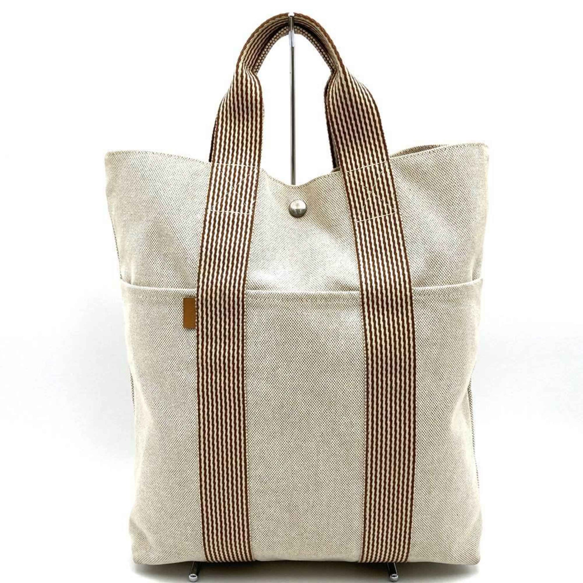 HERMES New Four Toe Tote Bag Handbag Beige Brown Canvas Women\'s Men\'s