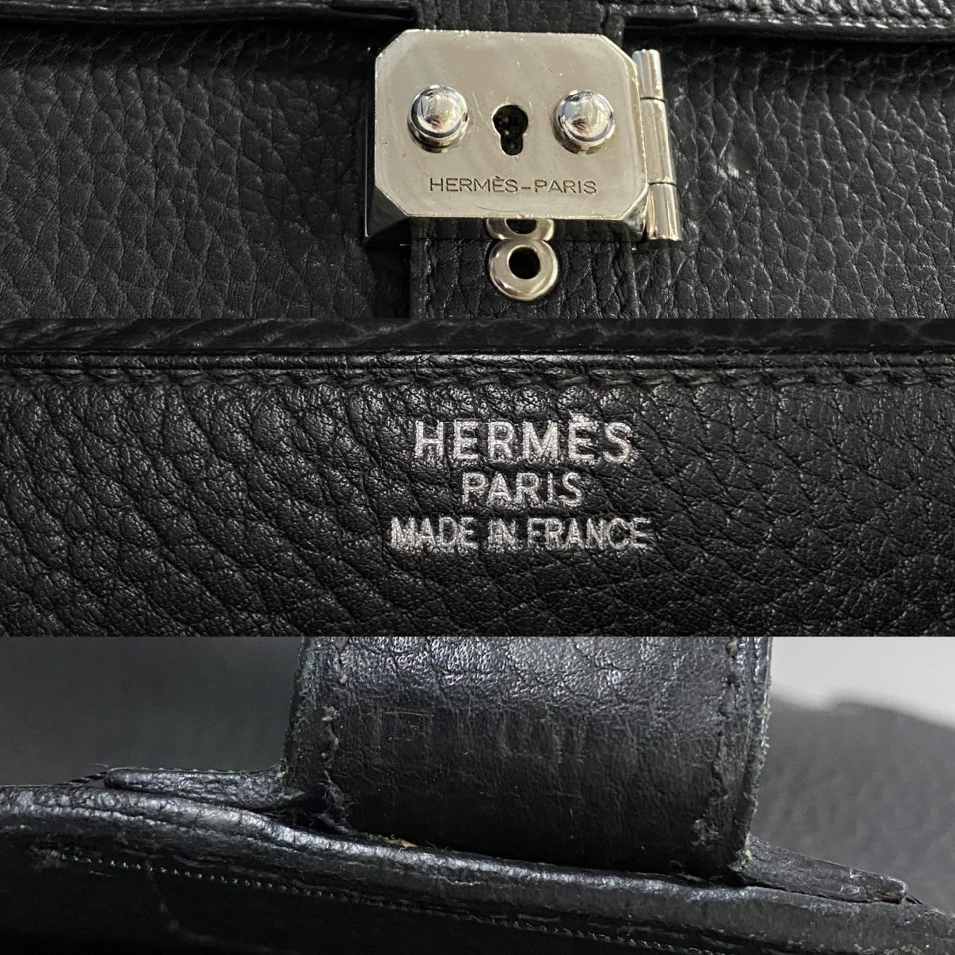 HERMES Sac A Depeche 41 Fjord Leather Business Briefcase in Black (nj7-5)