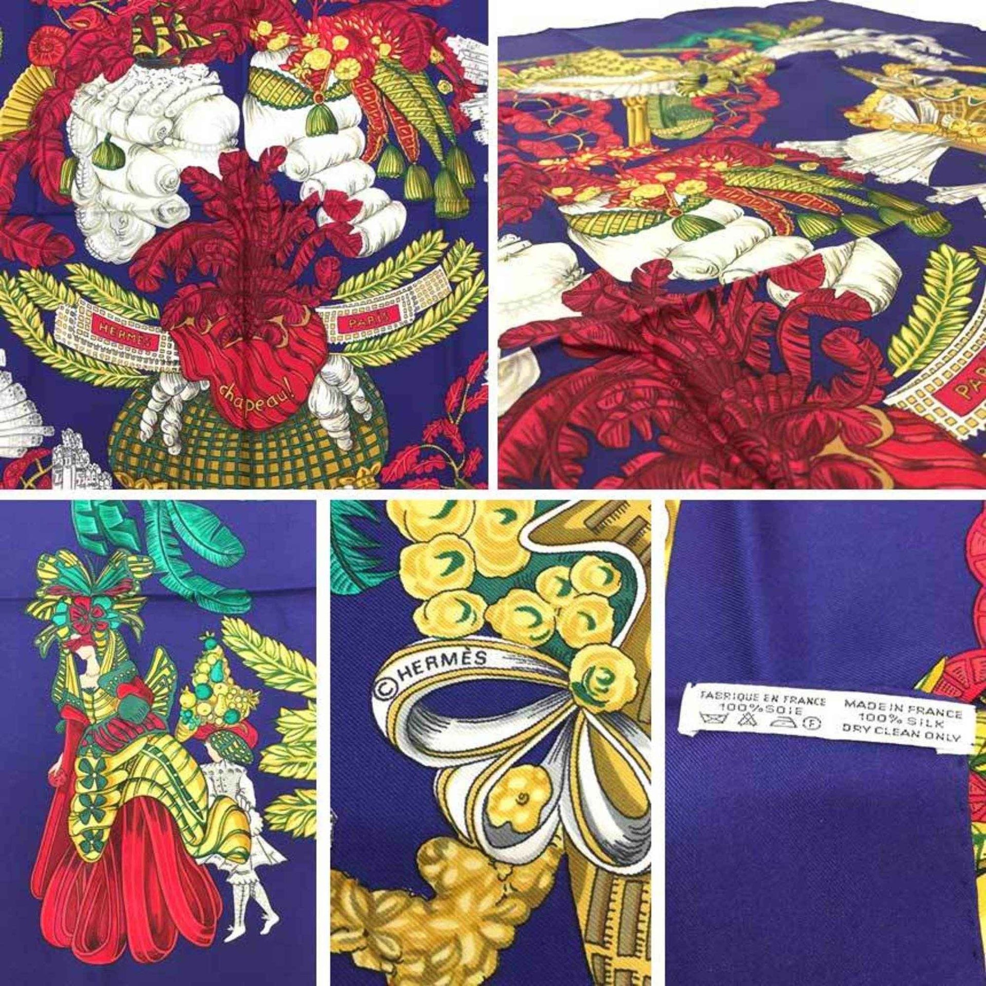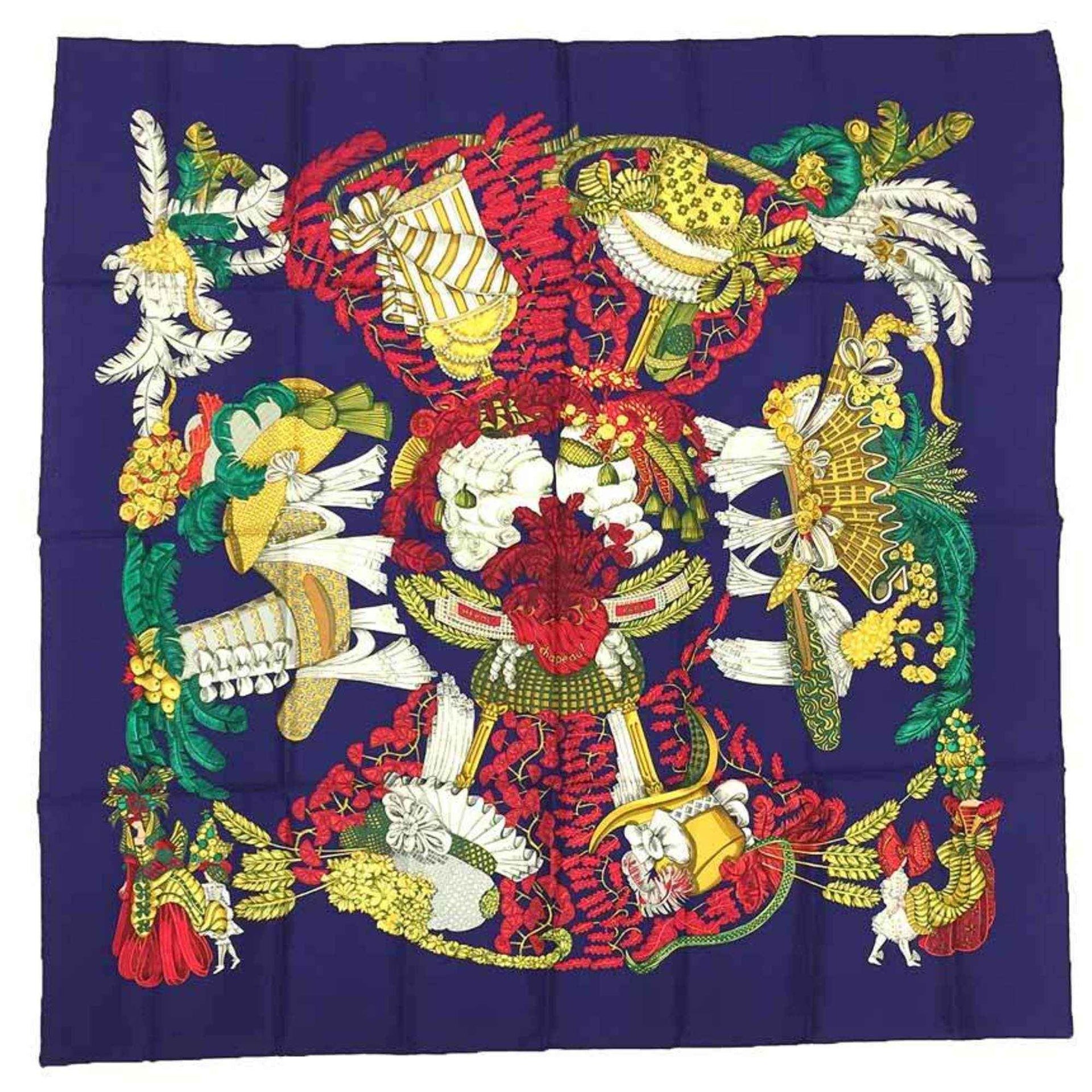 HERMES Scarf/Muffler Carré 90 CHAPEAU (Hat-off) 100% Silk Navy Hermès Scarf