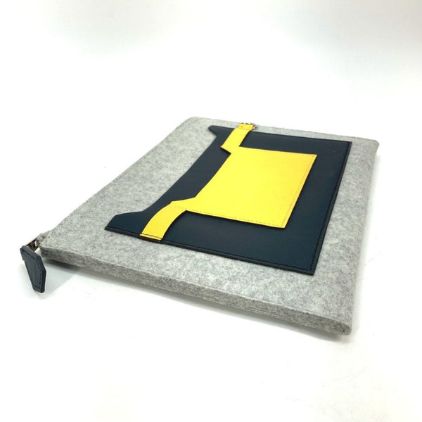 HERMES Toudou 29 Pouch, Second Bag, Clutch Felt/Epson, Men\'s, Gray/Yellow