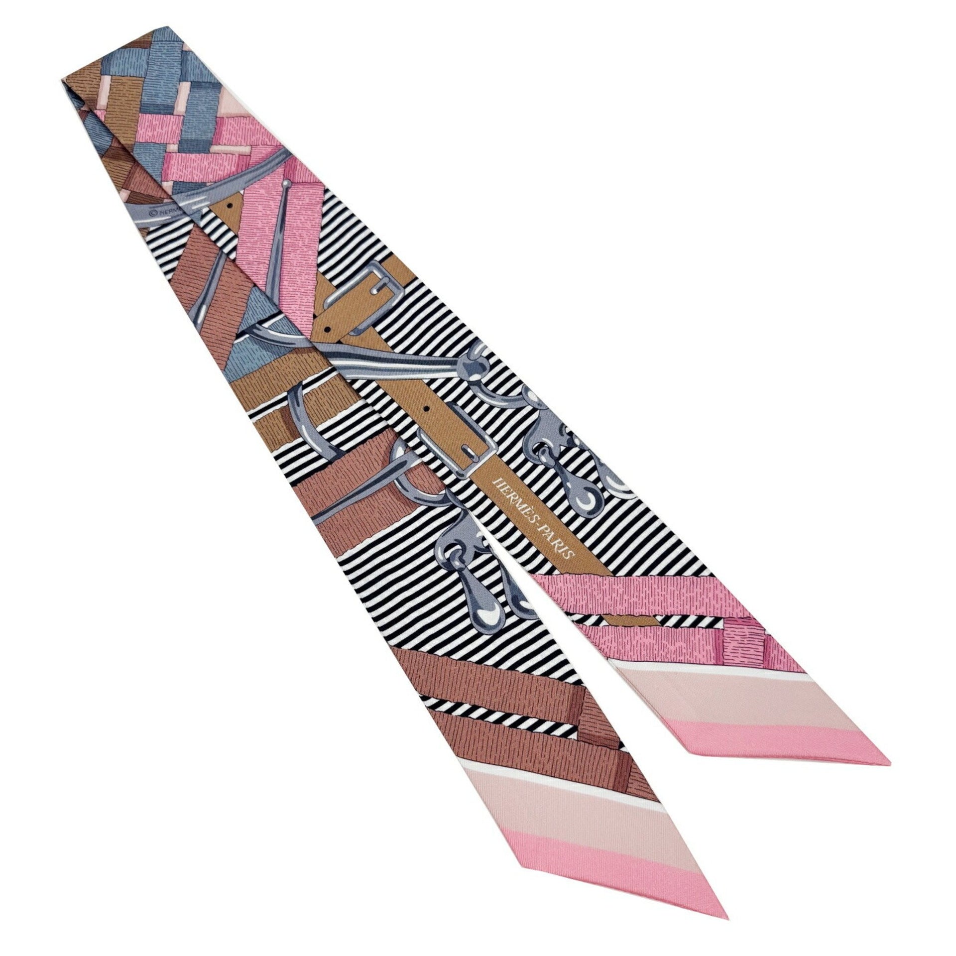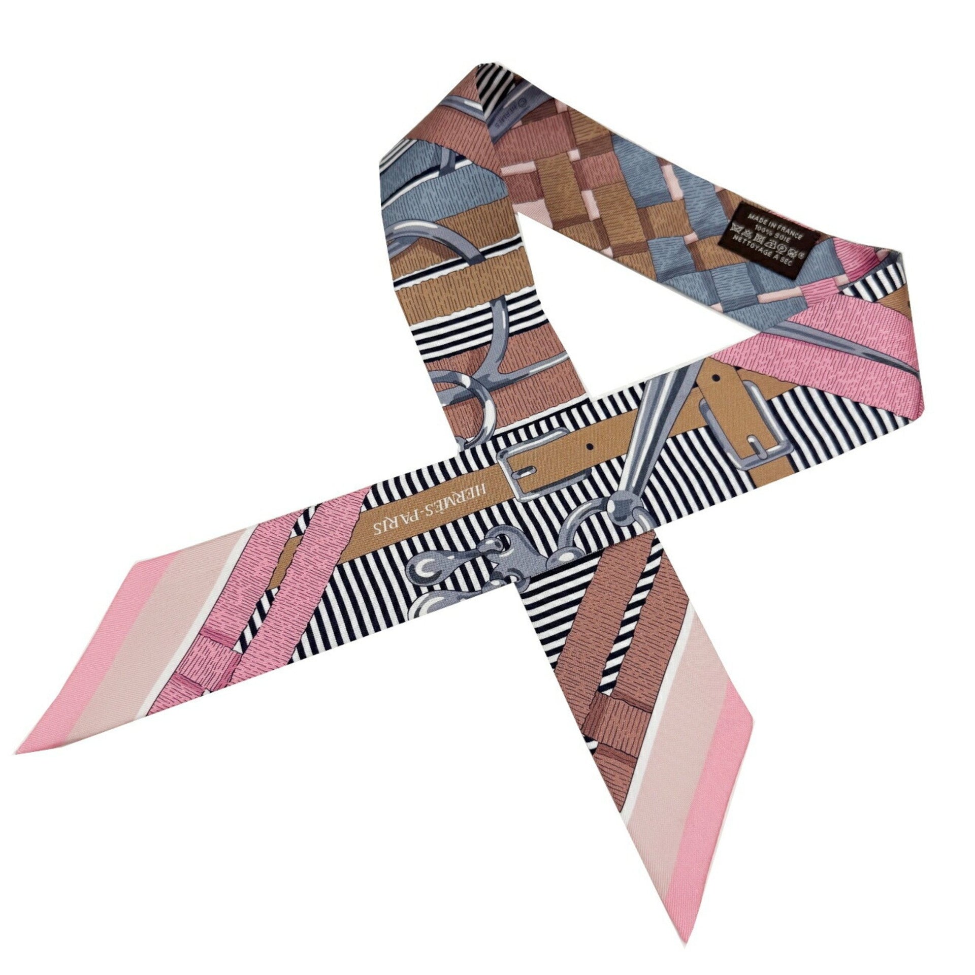 HERMES Twilly Chemise with 100% Silk Charm Scarf in Vieux Rose Grey and Camel by Henri d\'Origny