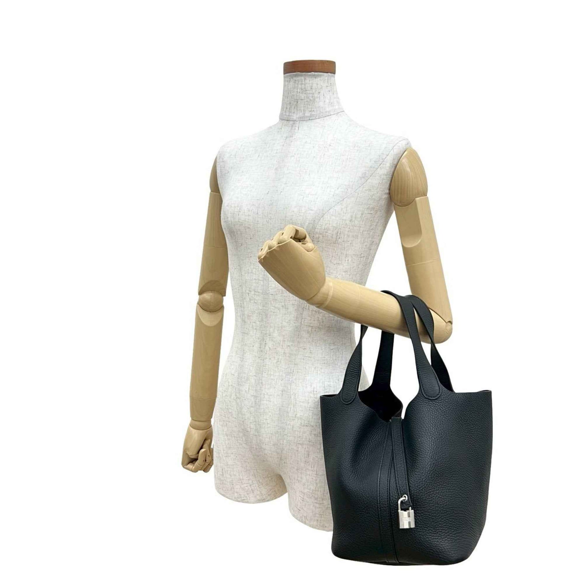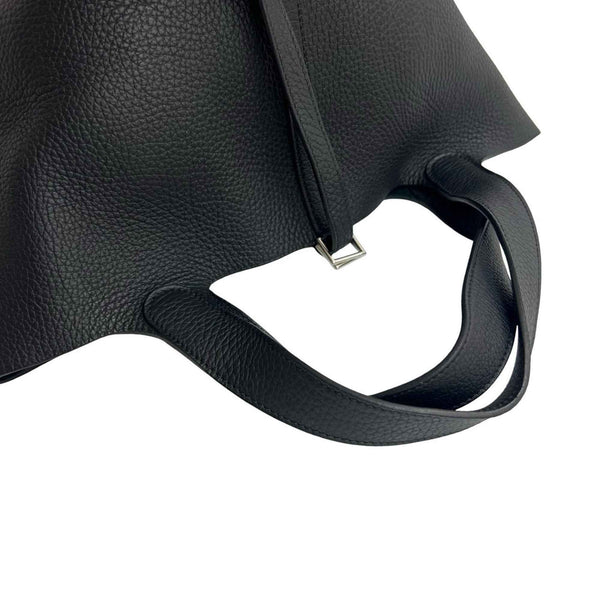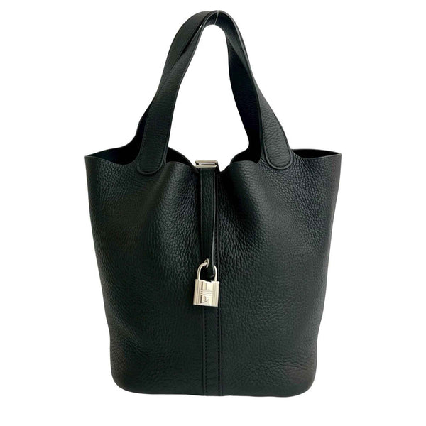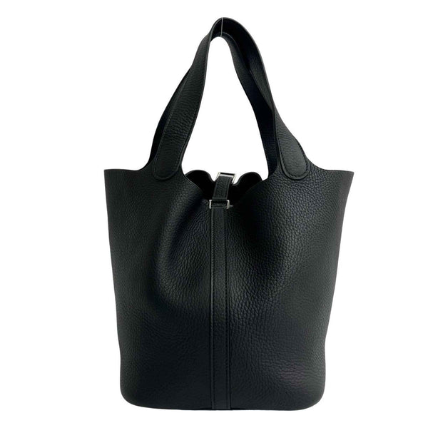 □P engraved HERMES Picotin Lock MM Taurillon Clemence leather handbag in black 71796