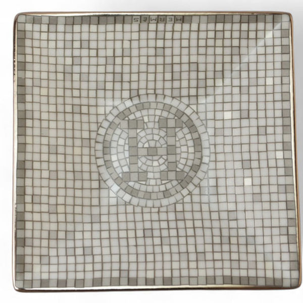 Unused Hermès Mini Plate/Tray, HERMES Mosaic Vin Quatre Platinum 7cm Petit Carré Square Plate No.1