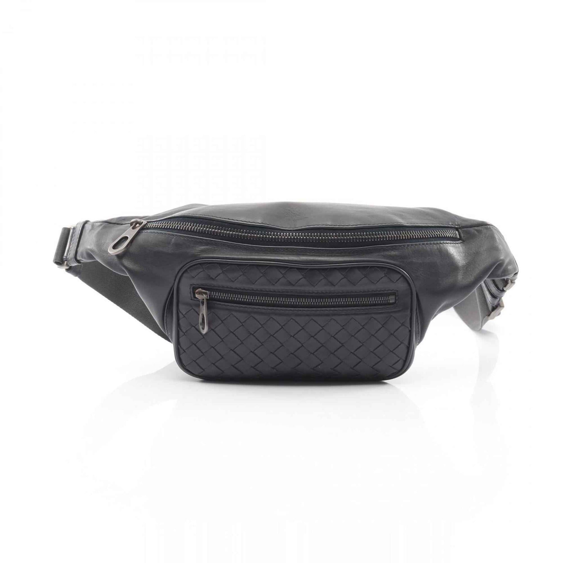 Bottega Veneta Intrecciato Leather Waist Bag/Body Bag, Navy Blue, 222310, for Men and Women