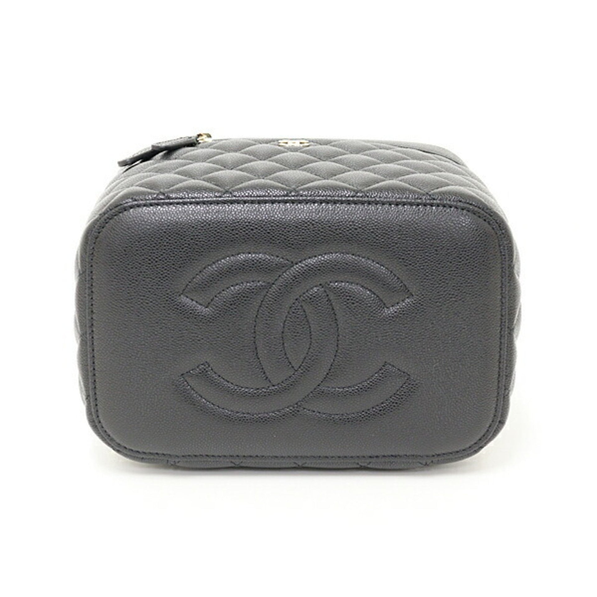 CHANEL Timeless Classic Vanity Bag Caviar Skin AP2573 Black Matelasse Unused F-04622