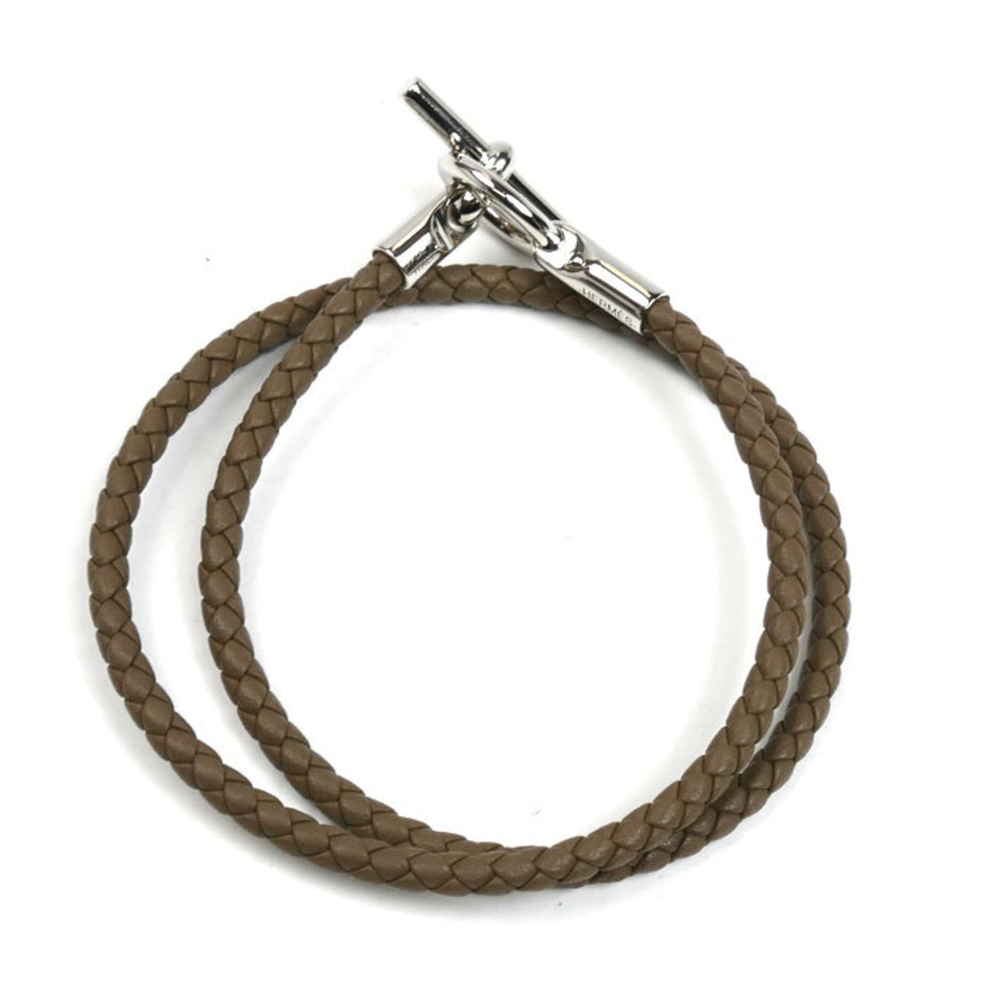HERMES Hermès Metal and Leather Grennan Double Tour Etoupe Bracelet H071689FP18 Women\'s