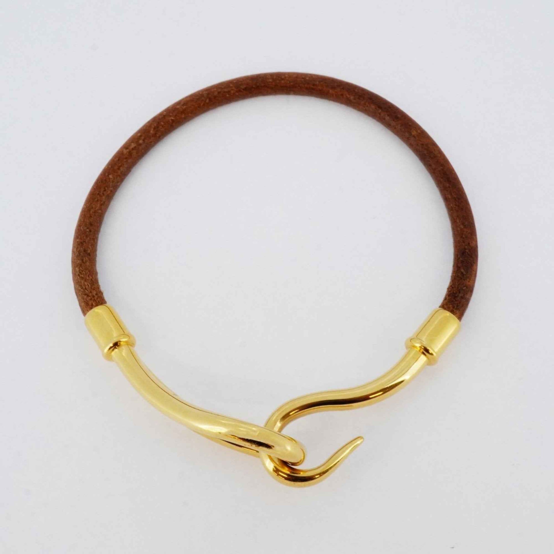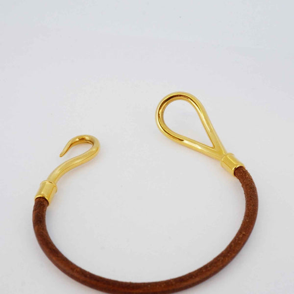 Hermes Jumbo Hook Bracelet, GP Plated Leather, Gold, Brown, Women\'s