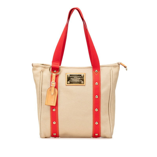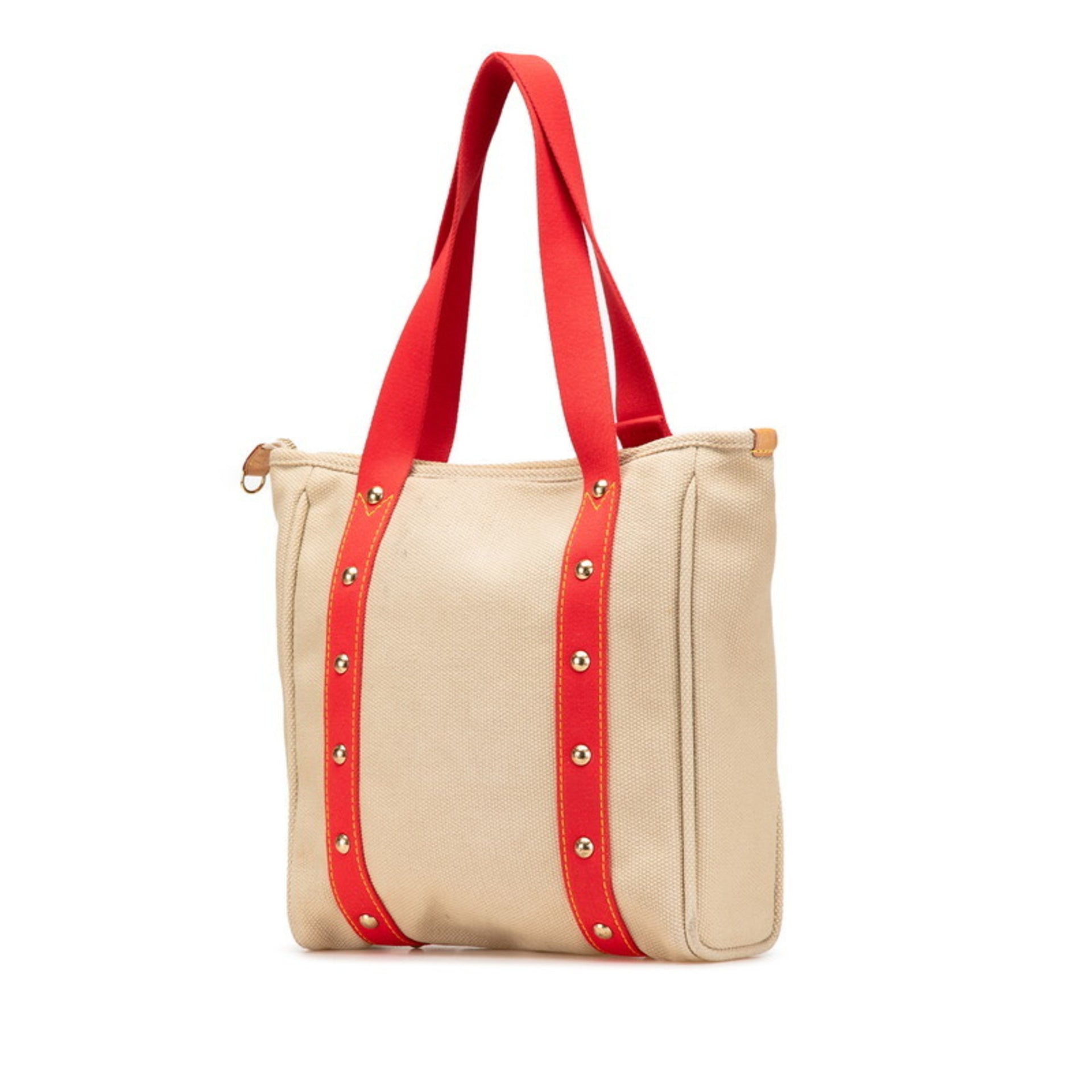 Louis Vuitton Antigua Cabas MM Tote Bag Shoulder M40035 Red Beige Canvas Leather Women\'s LOUIS VUITTON