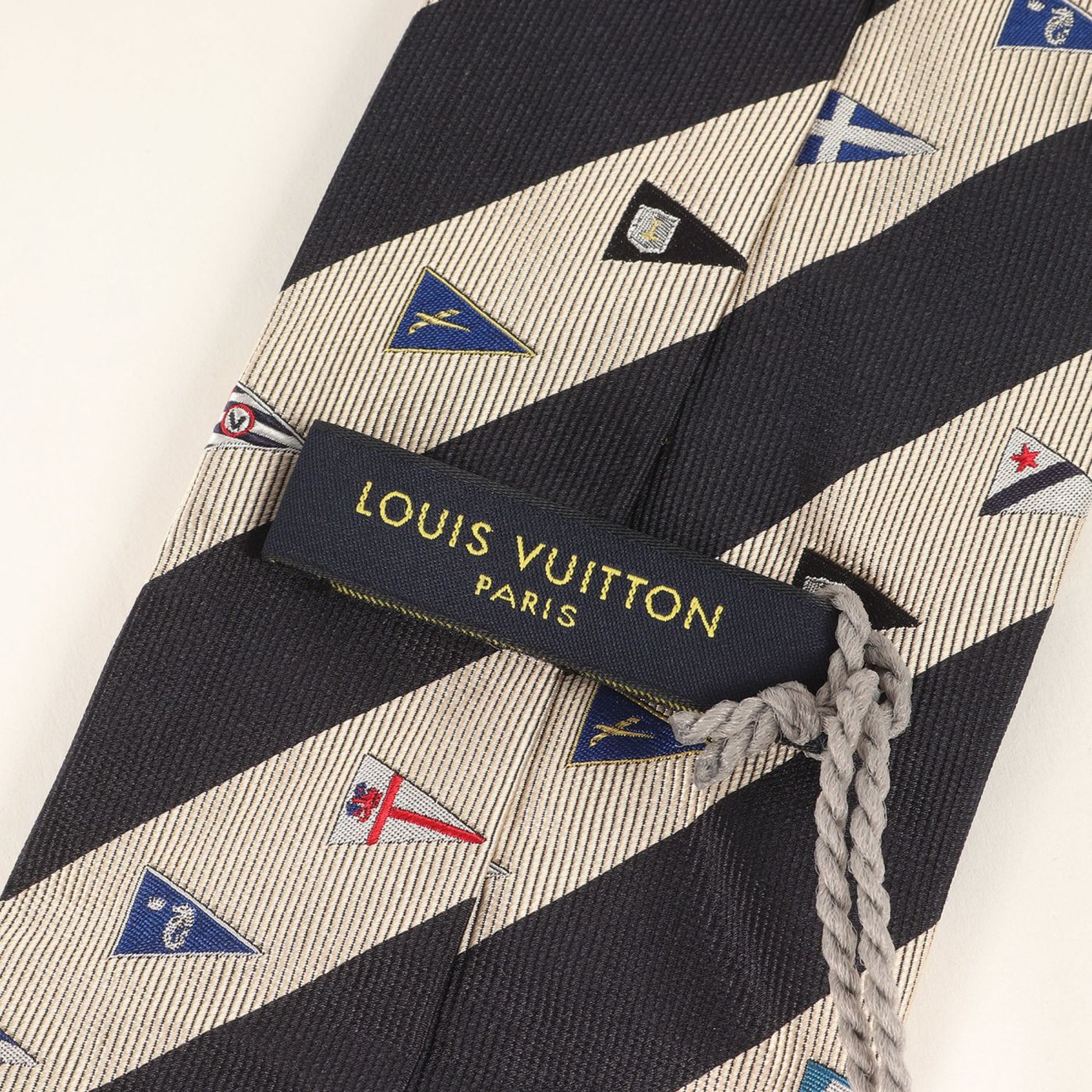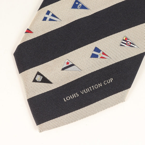 LOUIS VUITTON CUP Limited Edition Regimental Silk Cravat Tie in Beige with Flag Sail, Men\'s, Like New, K4613