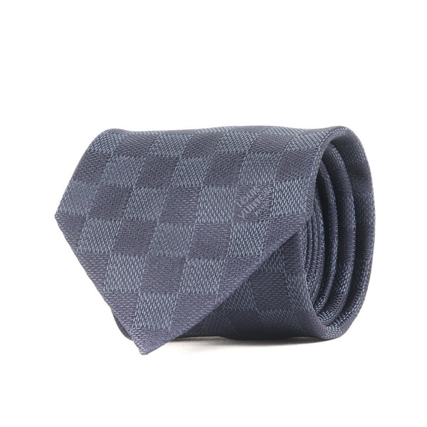 LOUIS VUITTON Damier Silk Cravate Tie MR1221 Navy Blue Men\'s K4613