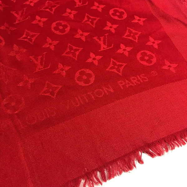 LOUIS VUITTON Louis Vuitton Monogram Large Fashion Accessory Stole Shawl Silk Wool Men Women Red