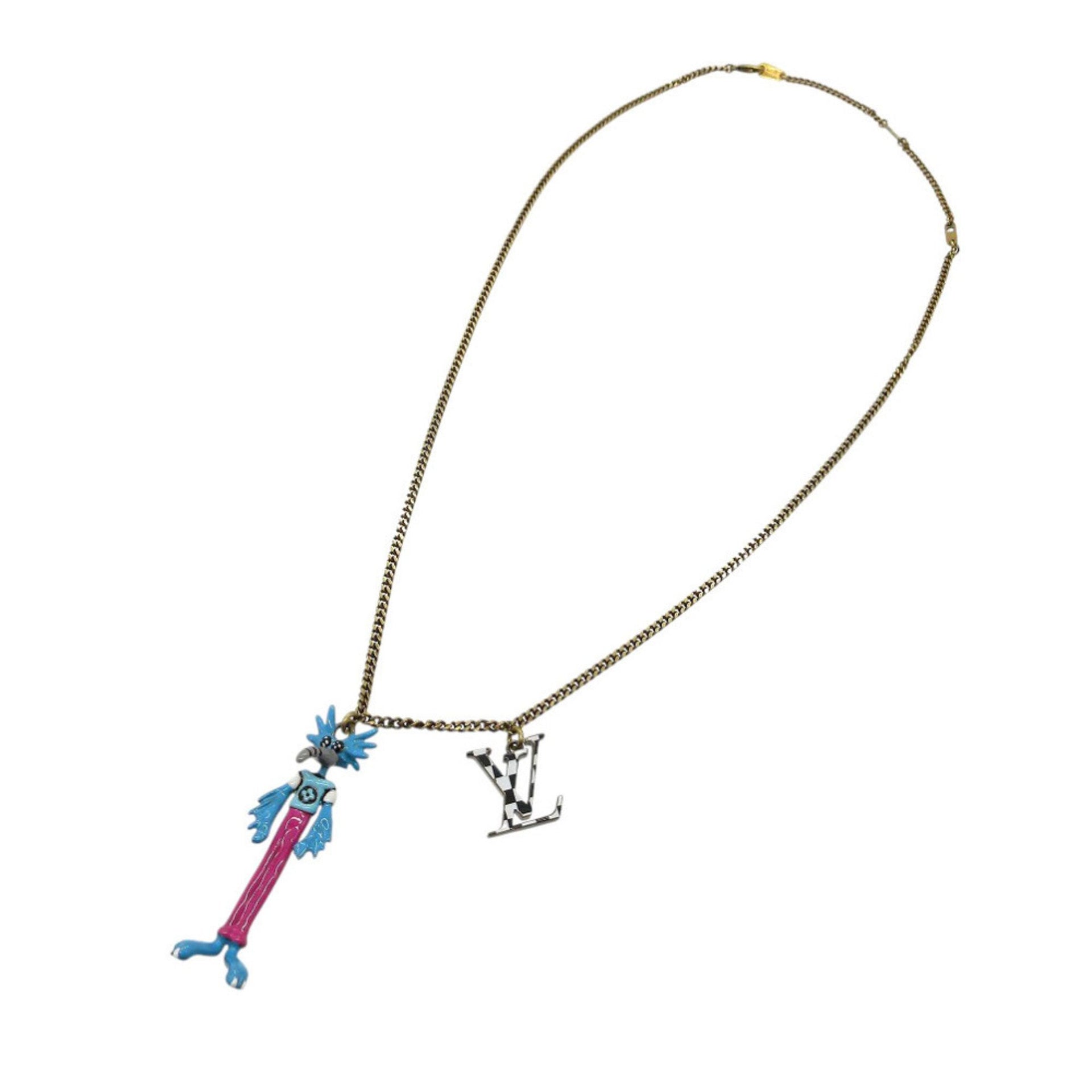 Louis Vuitton LV Animals Zoom-kun MP2928 Necklace, Metal/Enamel, Gold/Blue/Pink, 0419 LOUIS VUITTON