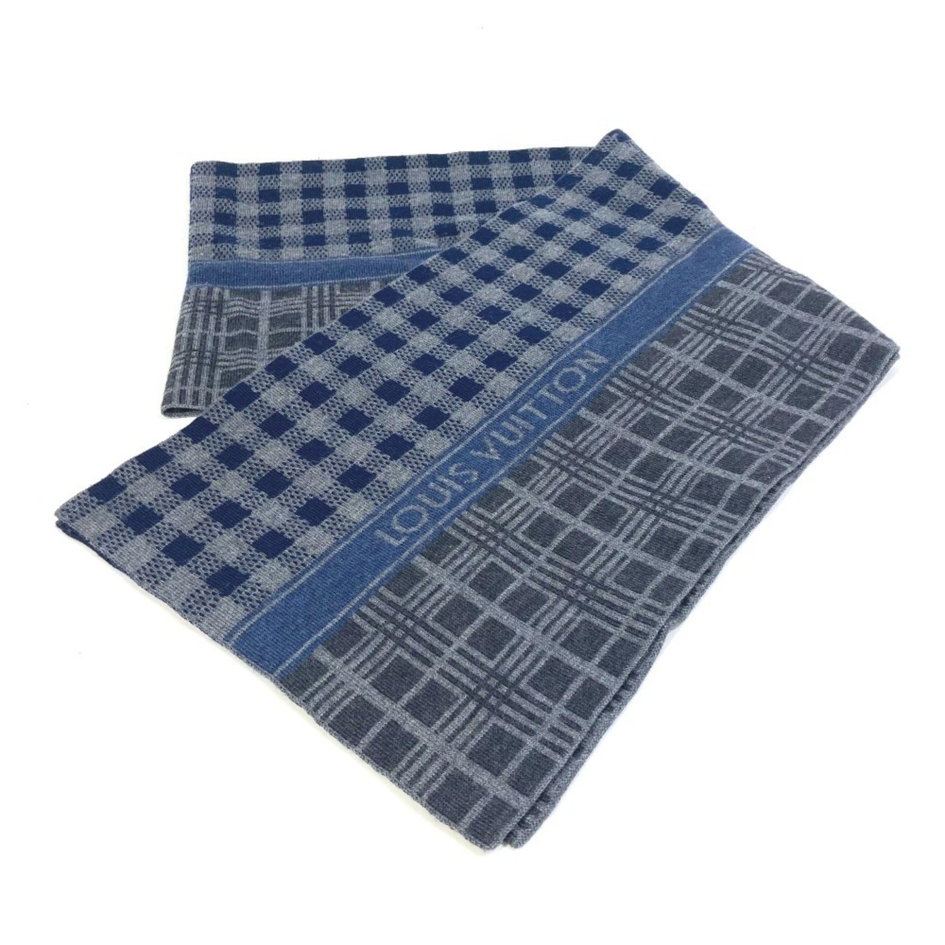 LOUIS VUITTON M74955 Echarpe Tartan Check Wool Scarf Men\'s Gray