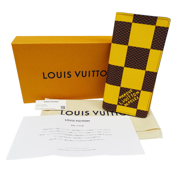Louis Vuitton Men\'s Damier Pop Canvas Long Wallet, Portefeuille Brazza NM, Yellow/Brown, N40541