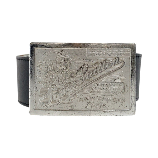 LOUIS VUITTON Men\'s Santur Jeans Belt, 110cm (44 inches), Black Leather with Silver Hardware, M6812