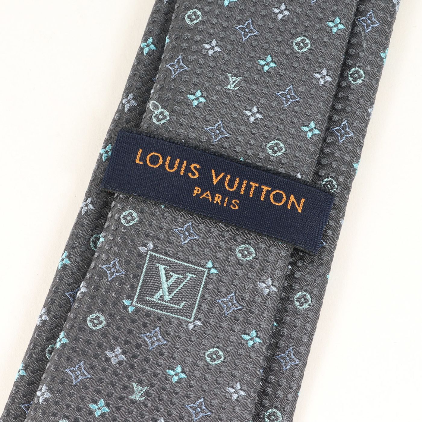 LOUIS VUITTON Micro Monogram Dot Silk Cravate Tie M78014 Gray 148cm x 7cm Men\'s Like New K4613