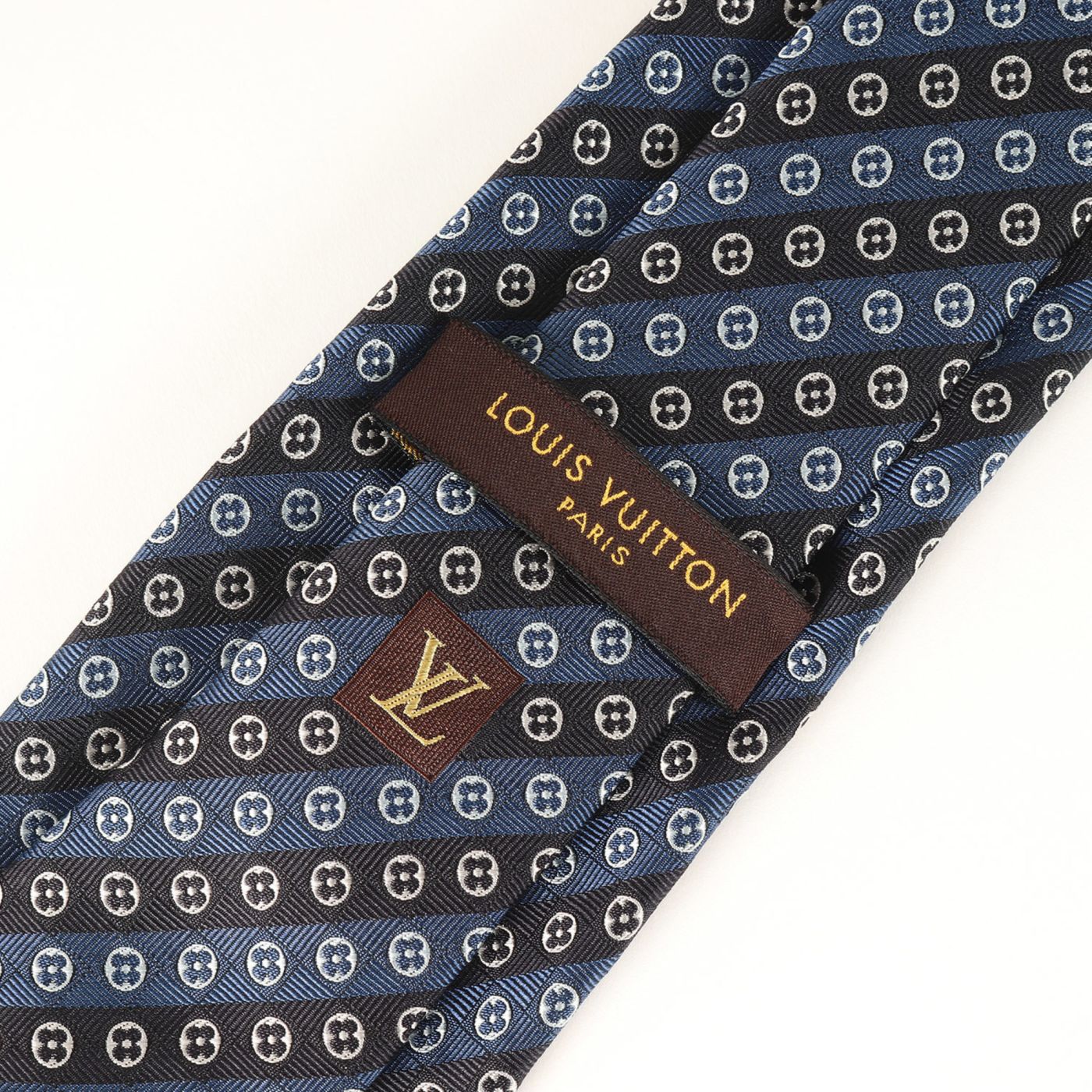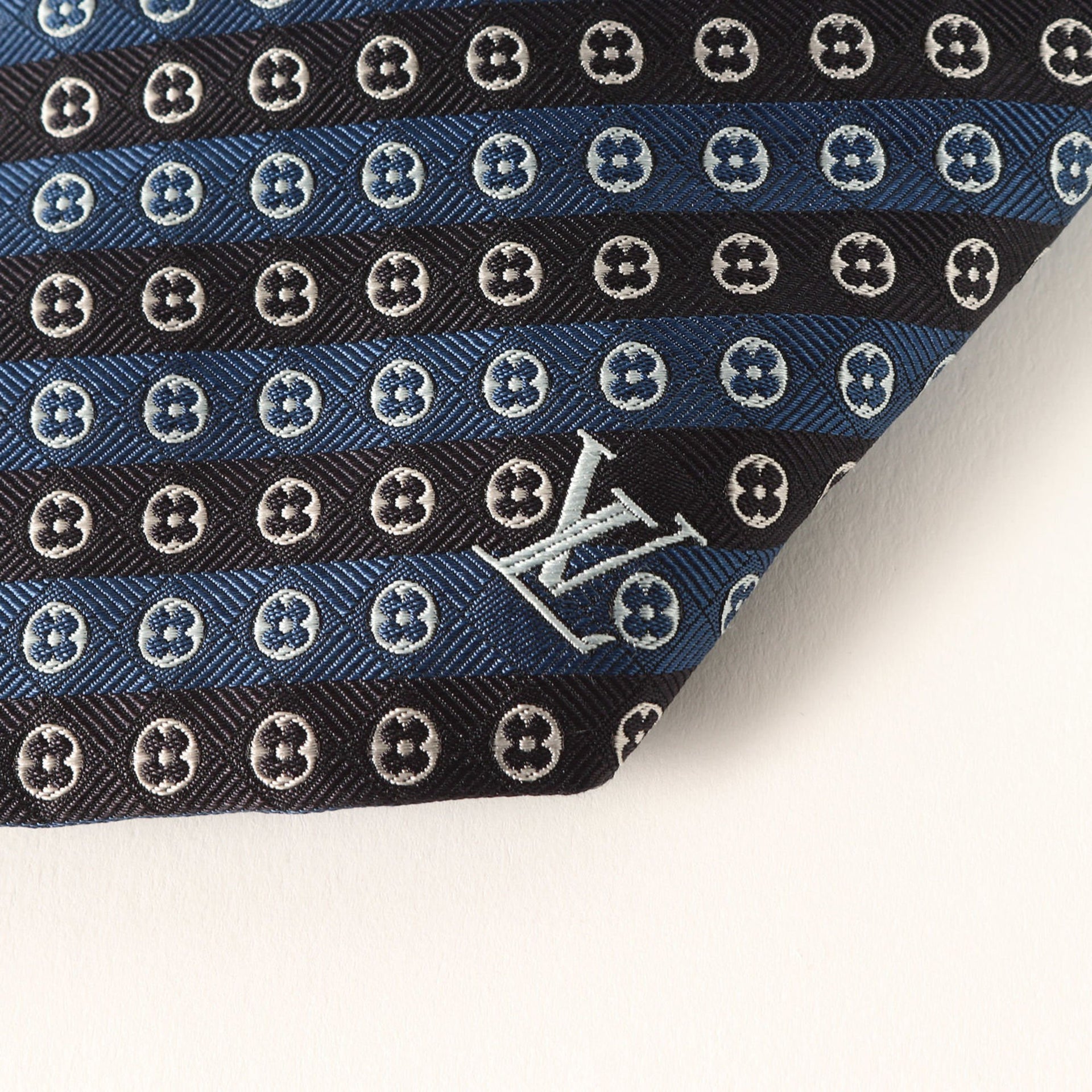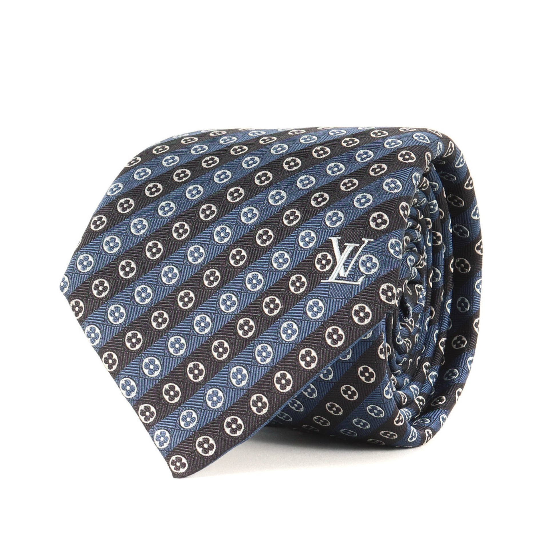 LOUIS VUITTON Monogram Regimental Silk Cravate Navy Tie, Men\'s, Like New, K4613