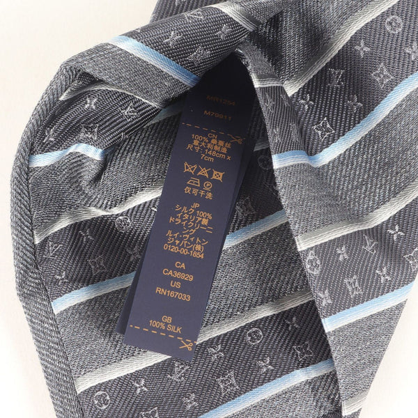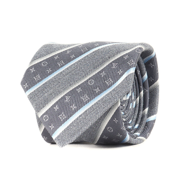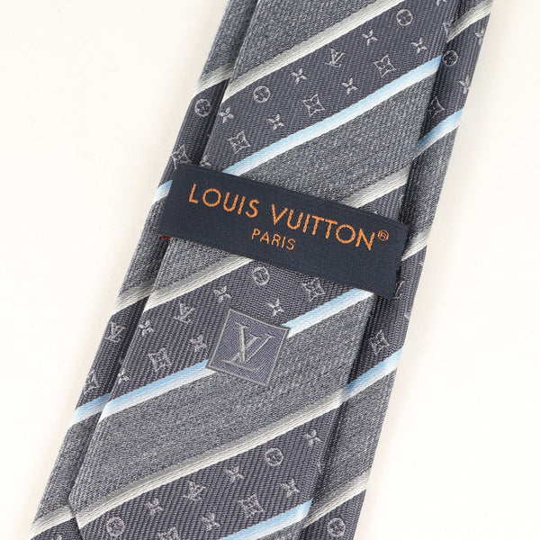 LOUIS VUITTON Regimental Monogram Silk Cravate Tie M79911 Gray 148cm x 7cm Men\'s K4613
