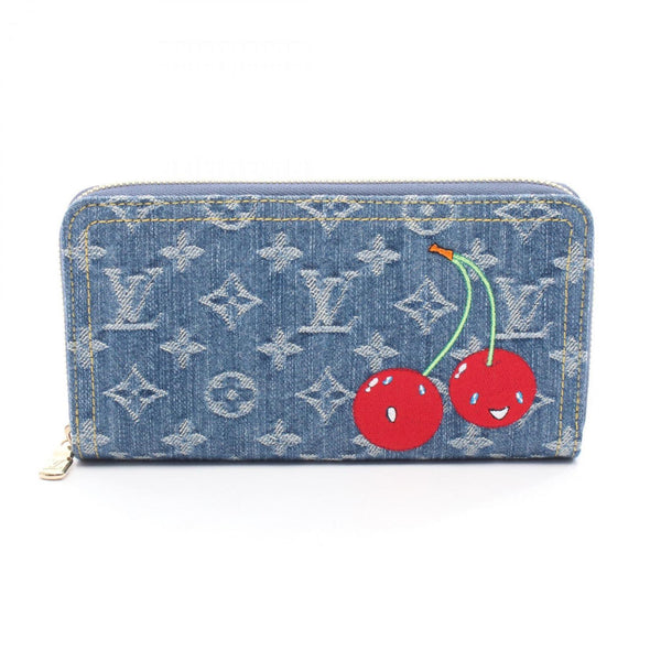 Louis Vuitton Takashi Murakami Zippy Wallet, Round Long Denim, Monogram Cherry, Women\'s, Blue, M23161