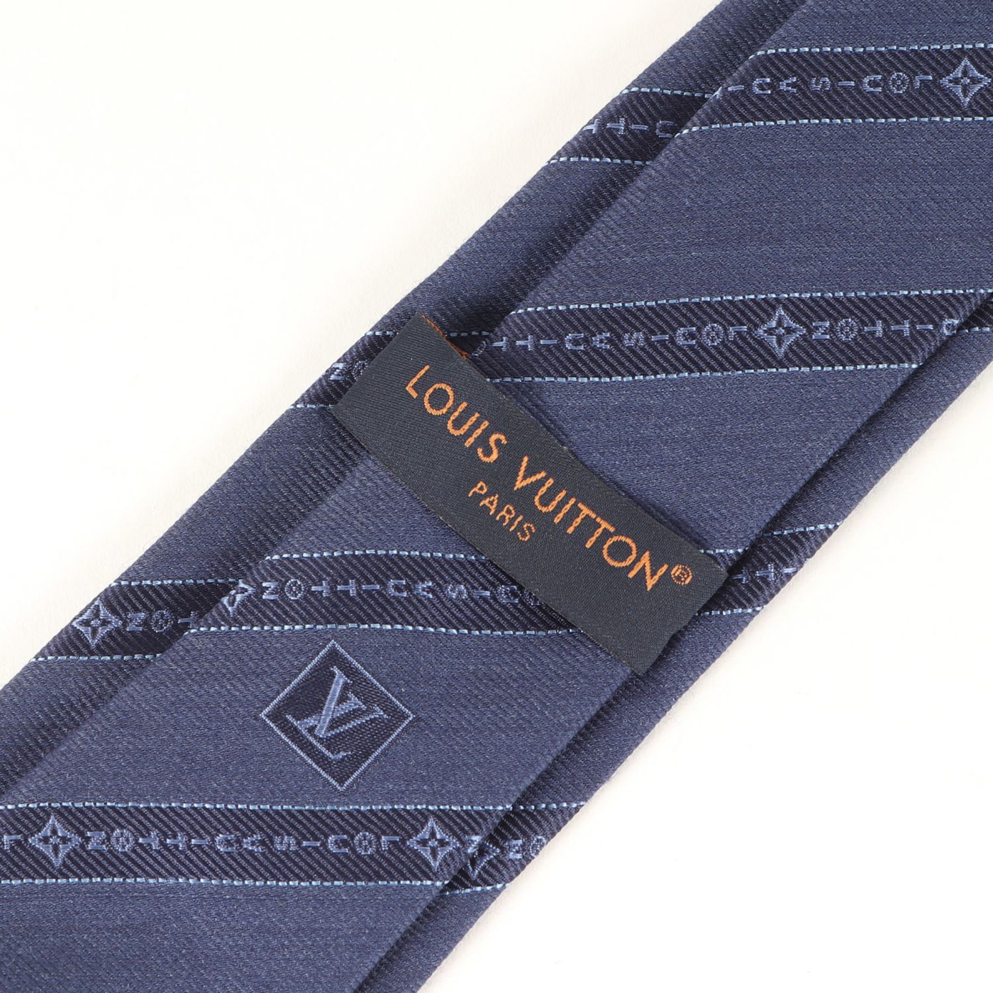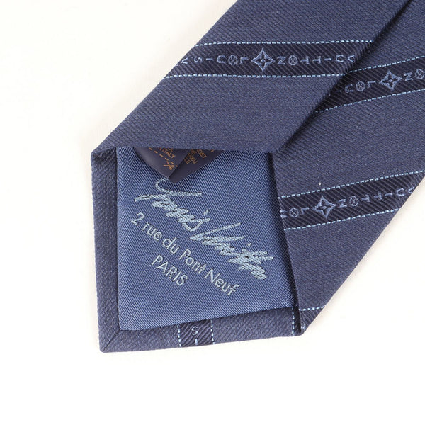 LOUIS VUITTON Tie, Tangled Regimental Silk Cravate, M79088, Navy Blue, Men\'s, Like New, K4618