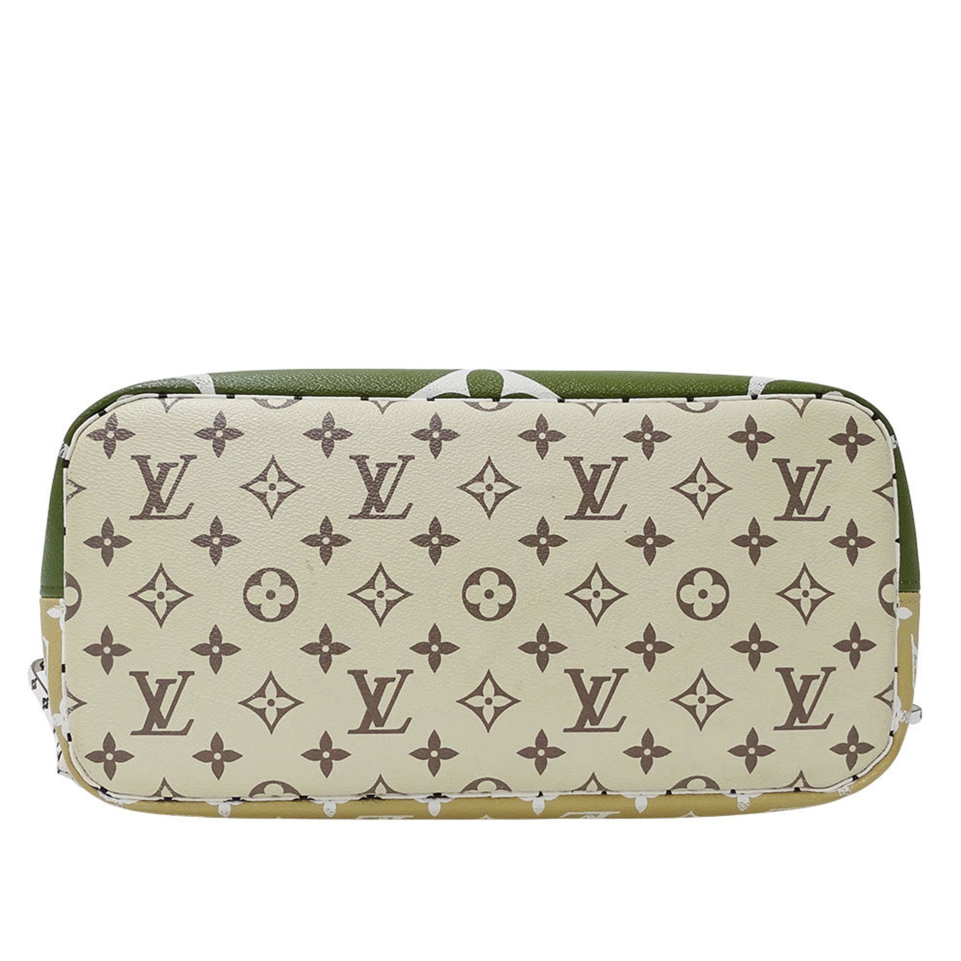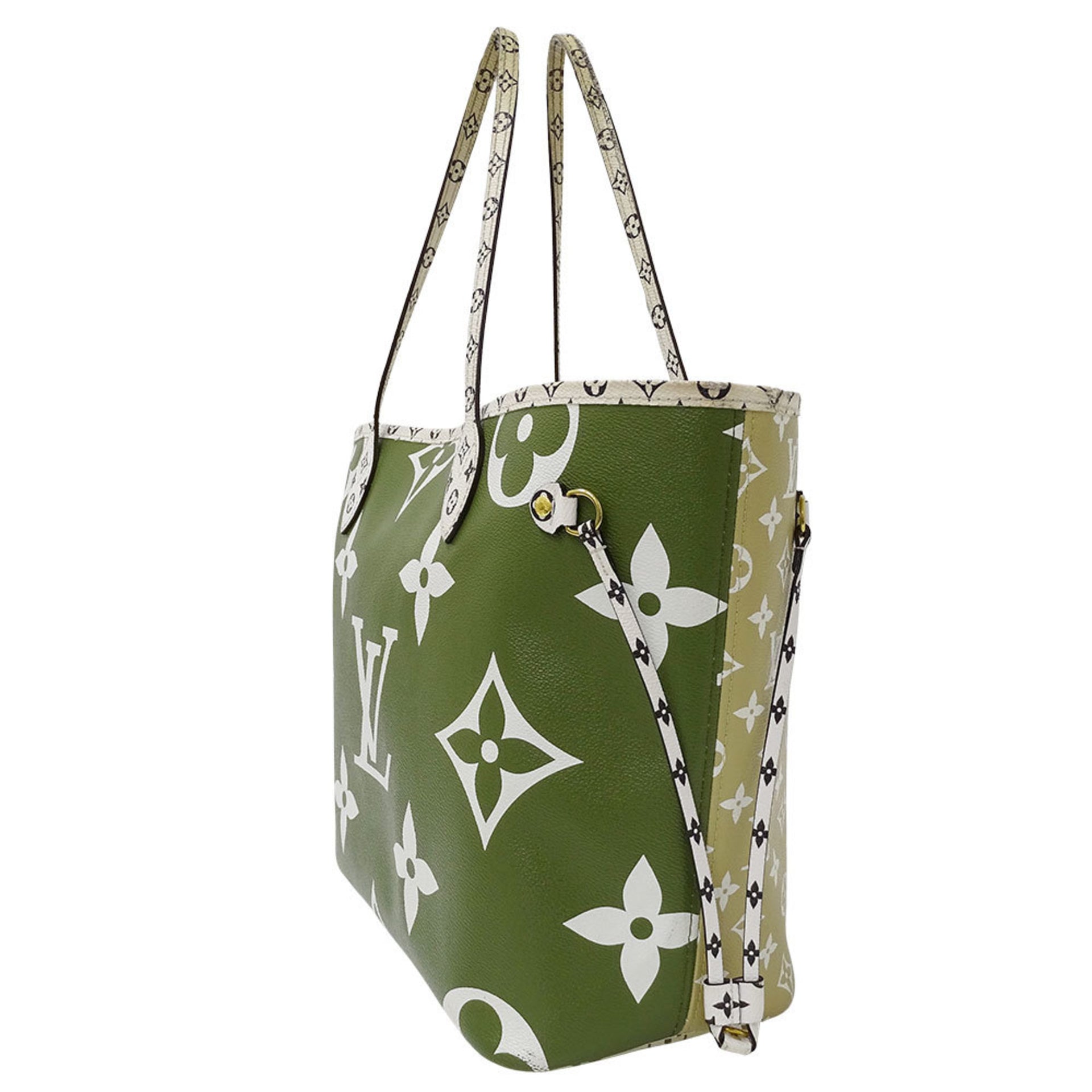 Louis Vuitton Women\'s Monogram Giant Canvas Neverfull MM Tote Bag, Khaki Green and Beige, M44568, Logo, Two-Tone, with Pouch
