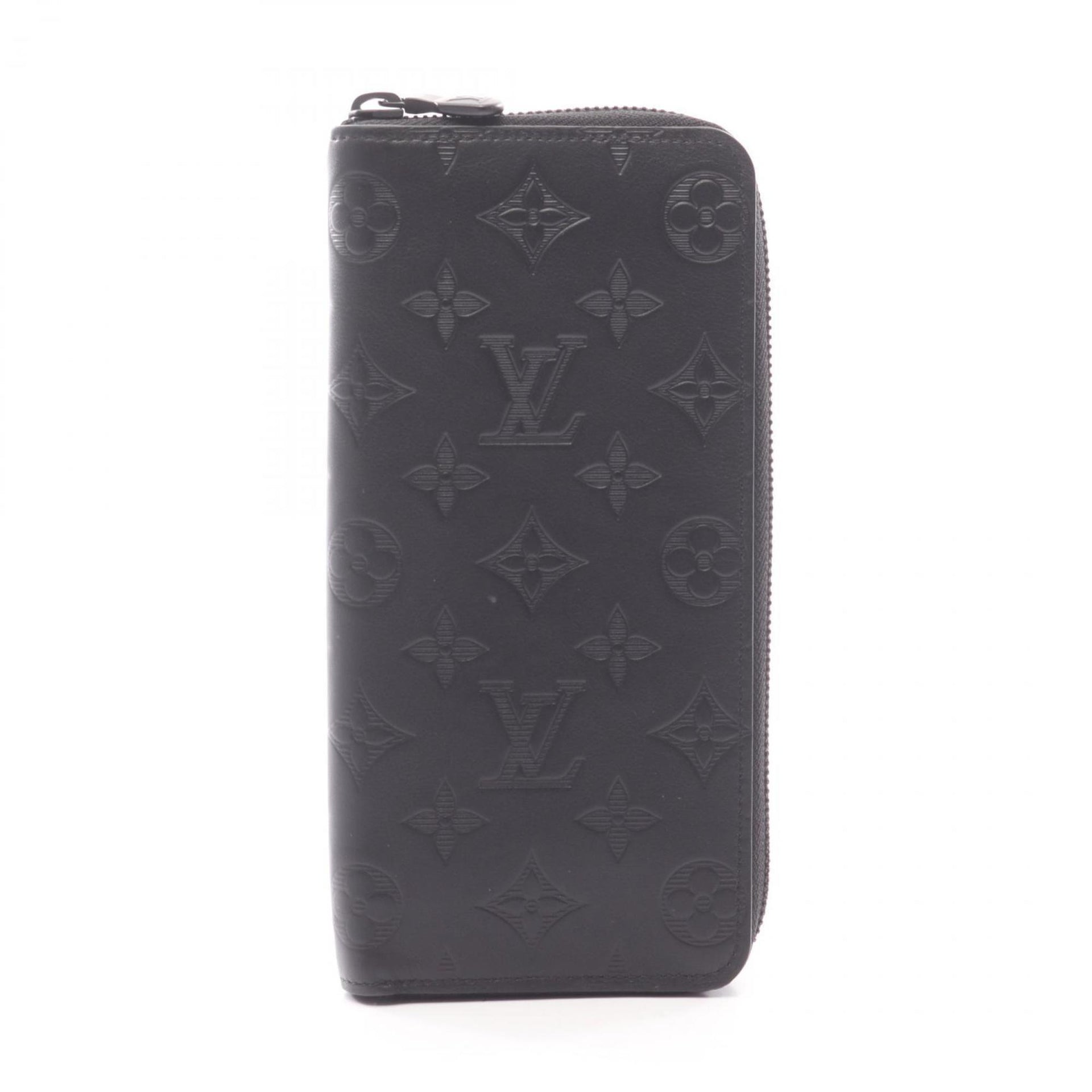 Louis Vuitton Zippy Wallet Vertical Round Long Leather Monogram Shadow Men\'s Black M62902