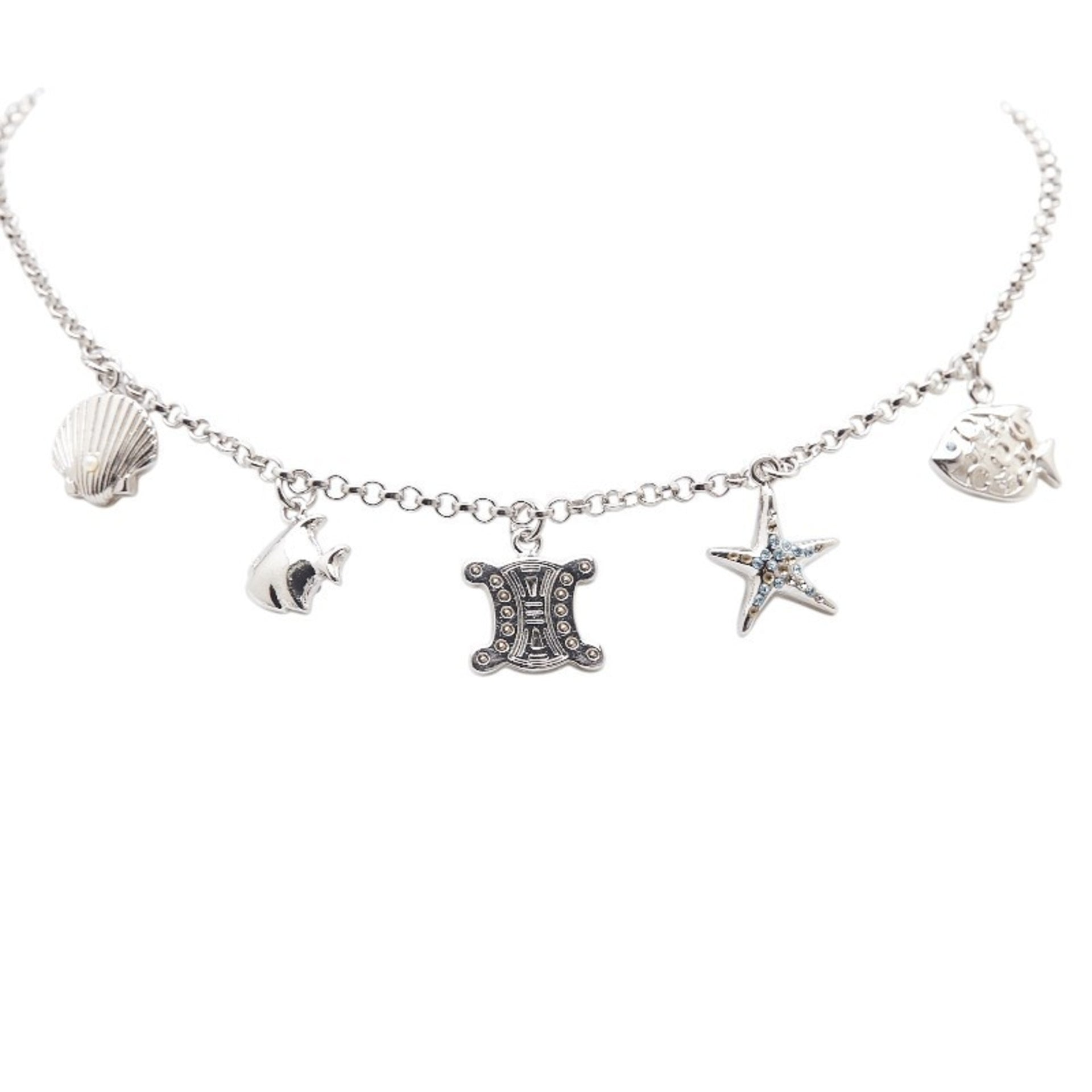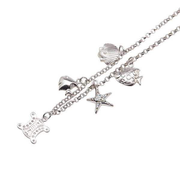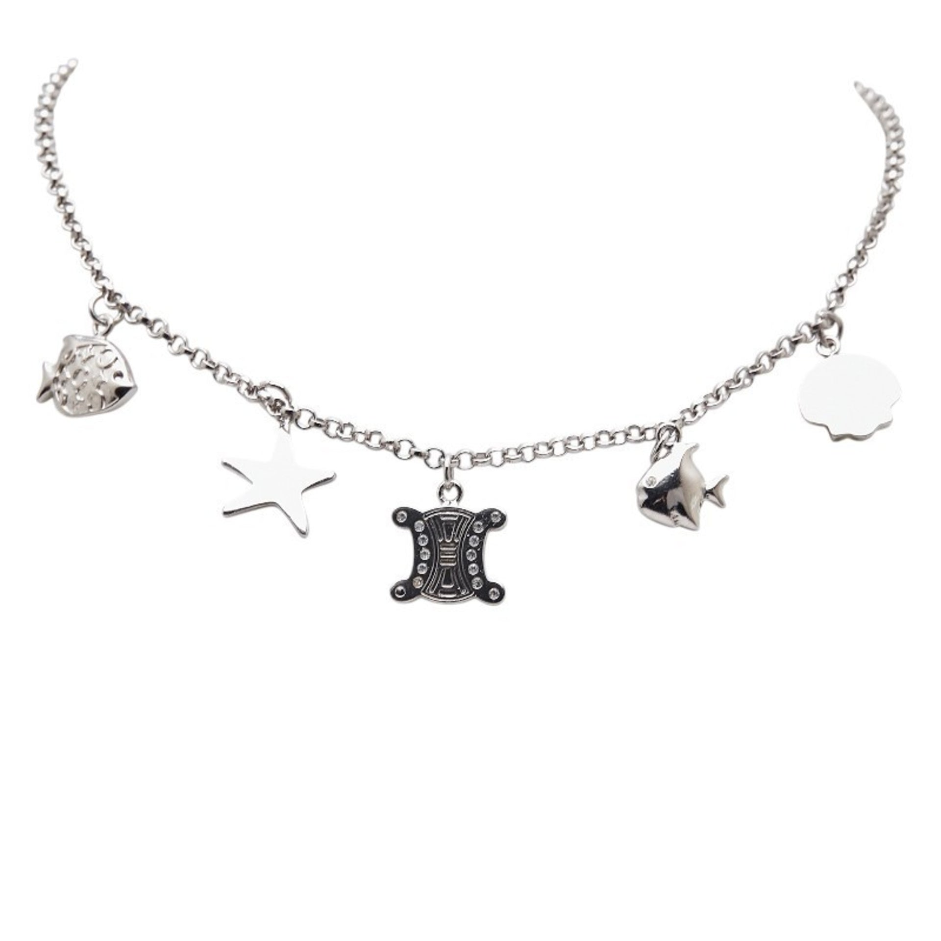 Celine Triomphe Starfish, Ocean Sunfish, Seashell and Rhinestone Necklace in Silver Metal for Women
