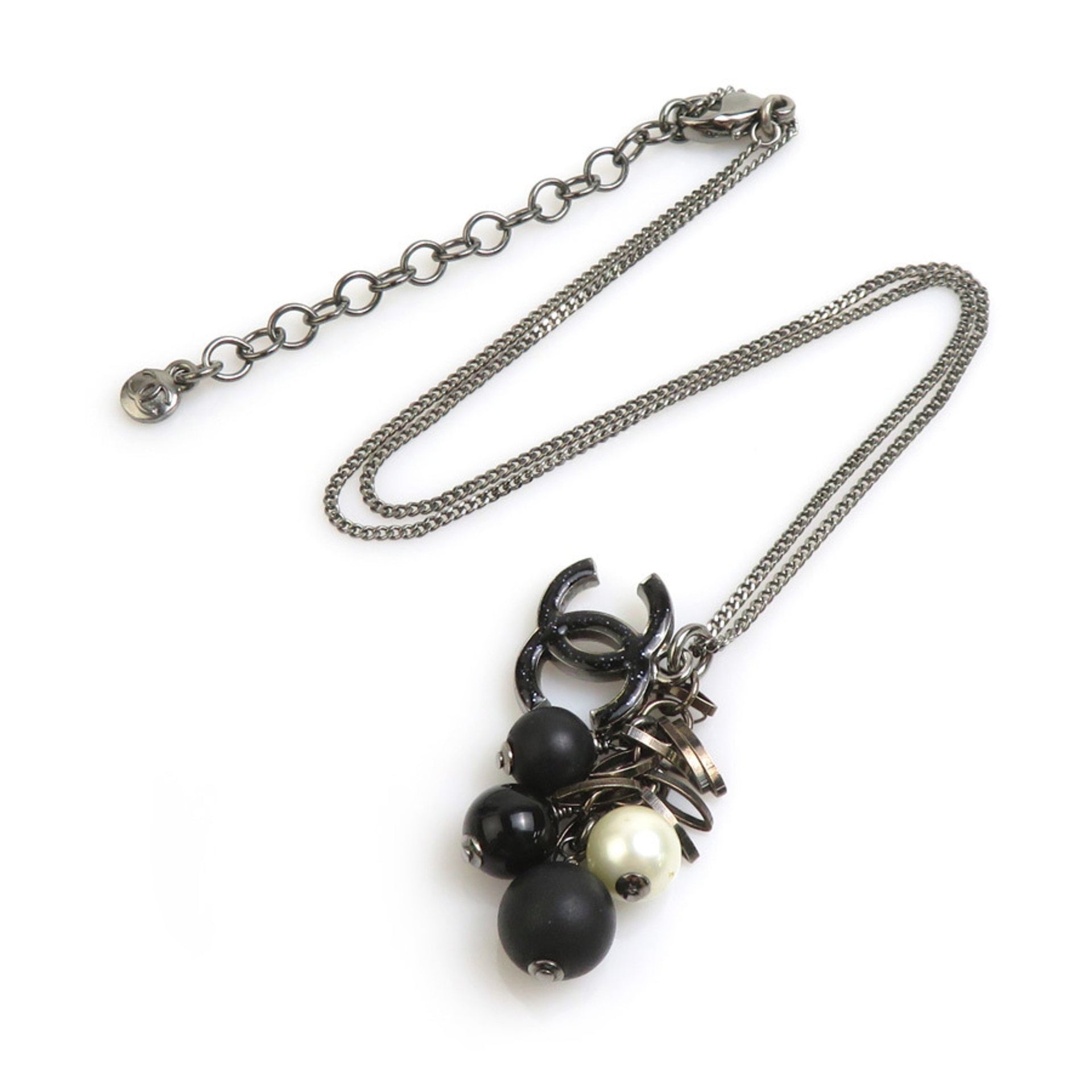 CHANEL Coco Mark Metal Necklace with Faux Pearls in Black and Off-White, Women\'s, e60904a