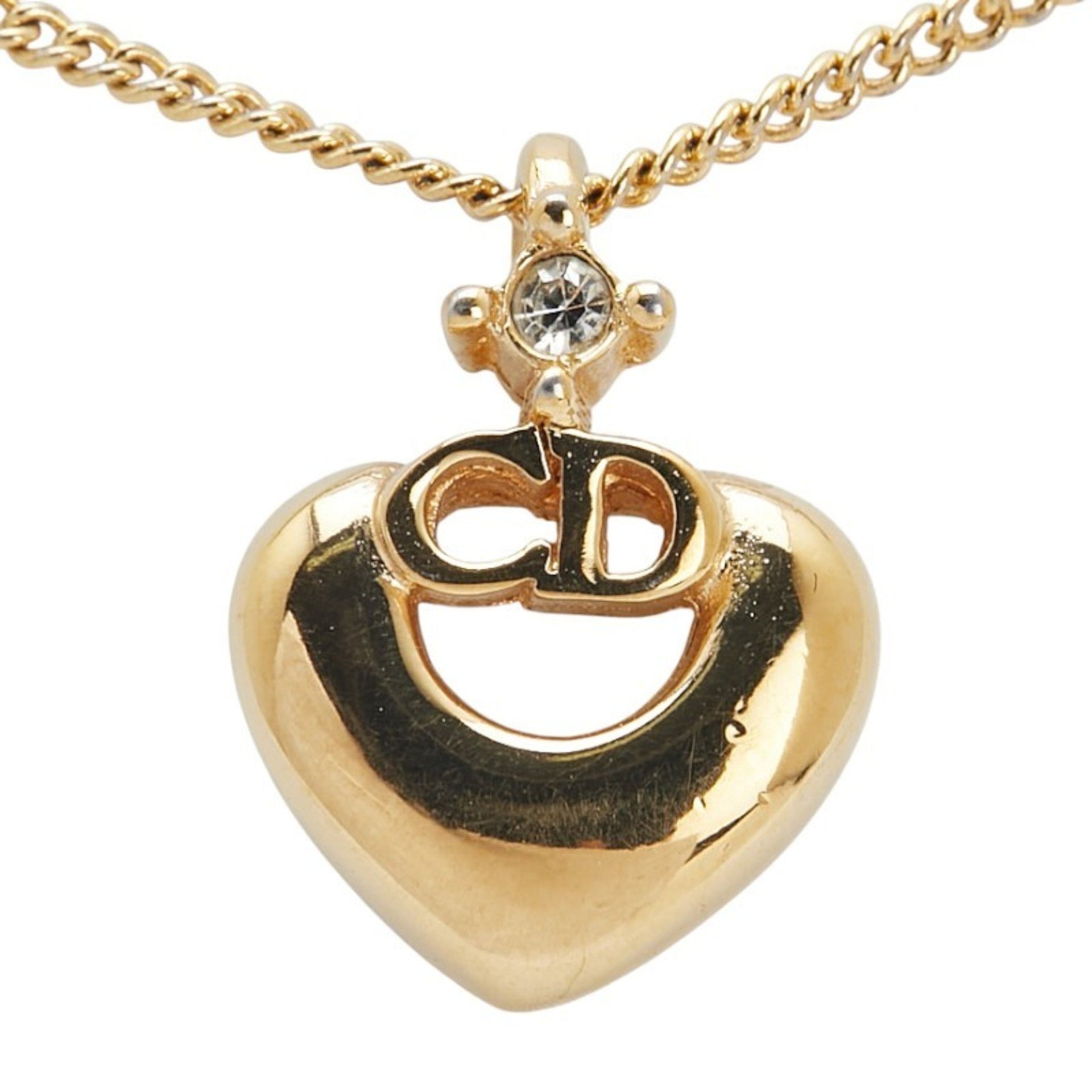 Christian Dior Dior CD logo pendant necklace in gold with rhinestones for women.