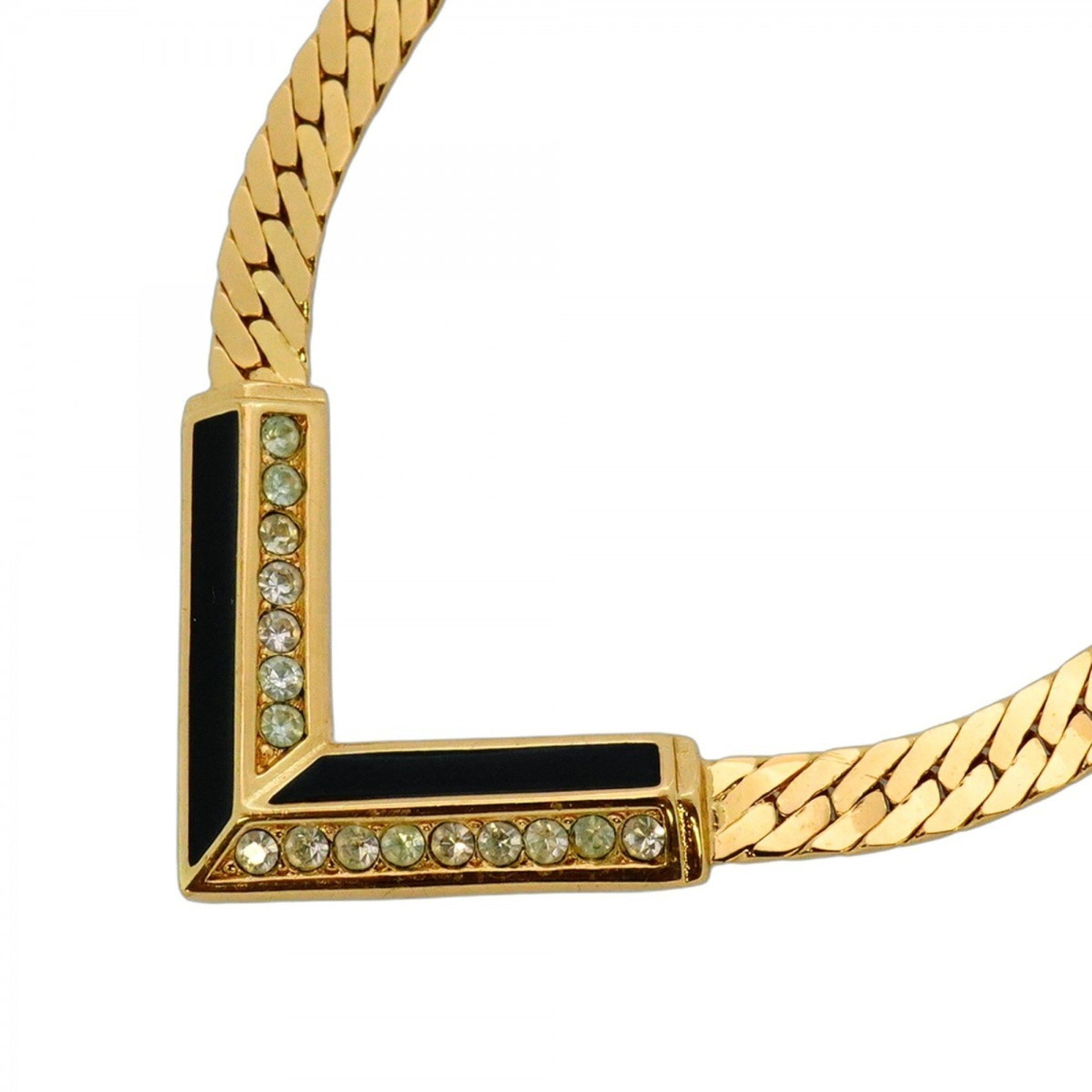 Christian Dior Necklace, GP Plated, Rhinestone, Gold, Black, Women\'s