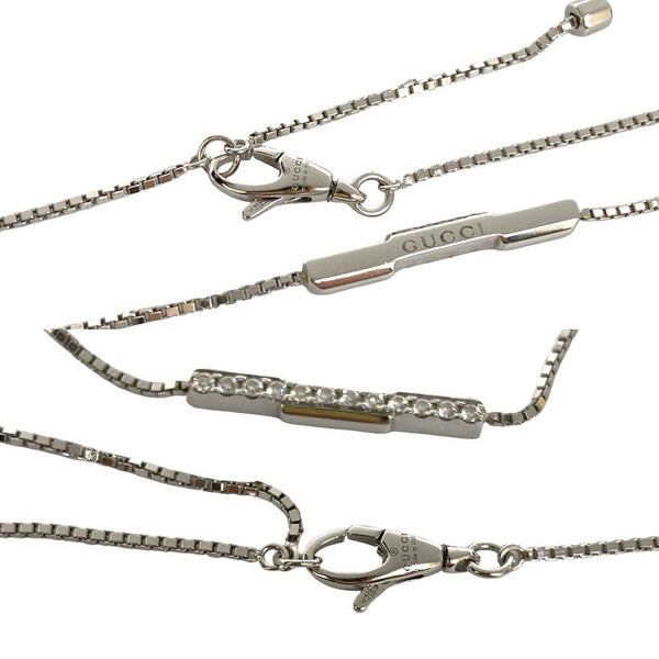 GUCCI Link to Love Bar Pendant in 18K White Gold with Diamond Chain and Silver Necklace, 24534