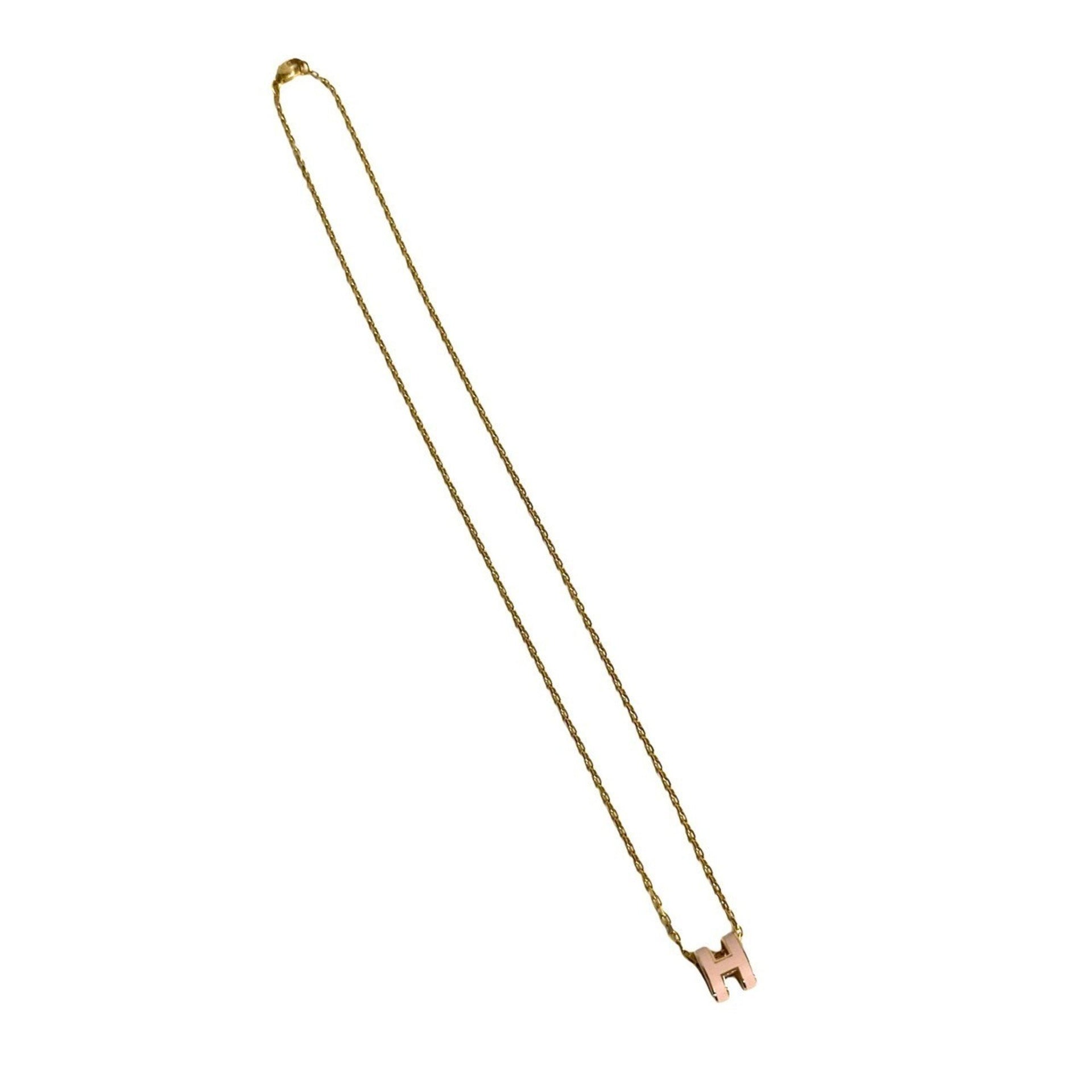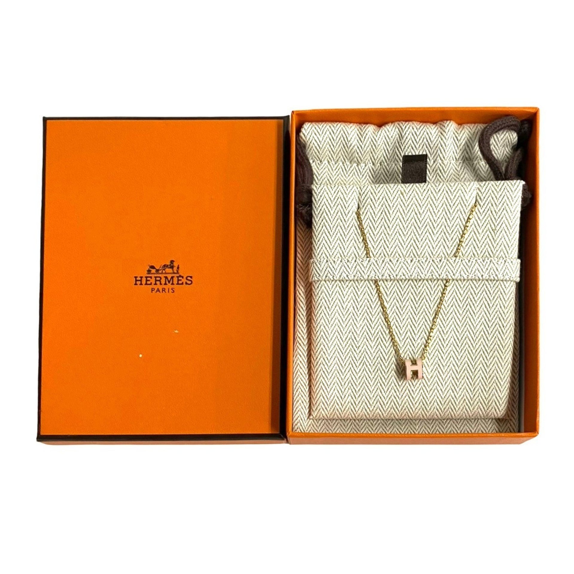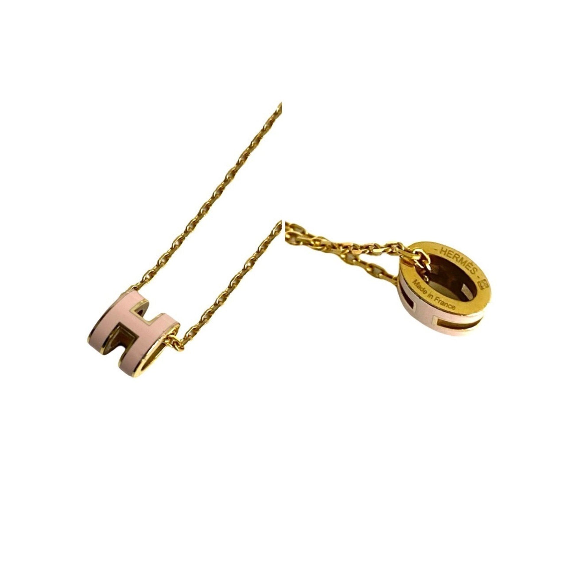 HERMES Mini Pop H Logo Motif GP Necklace Pendant Accessory Gold Pink 34790