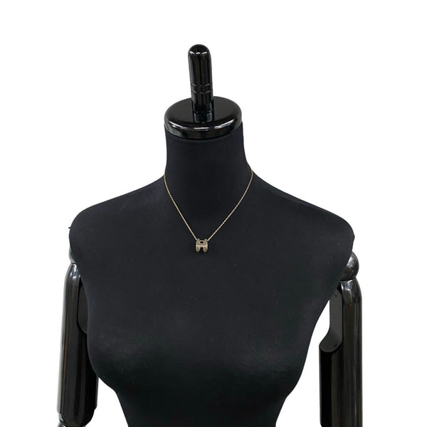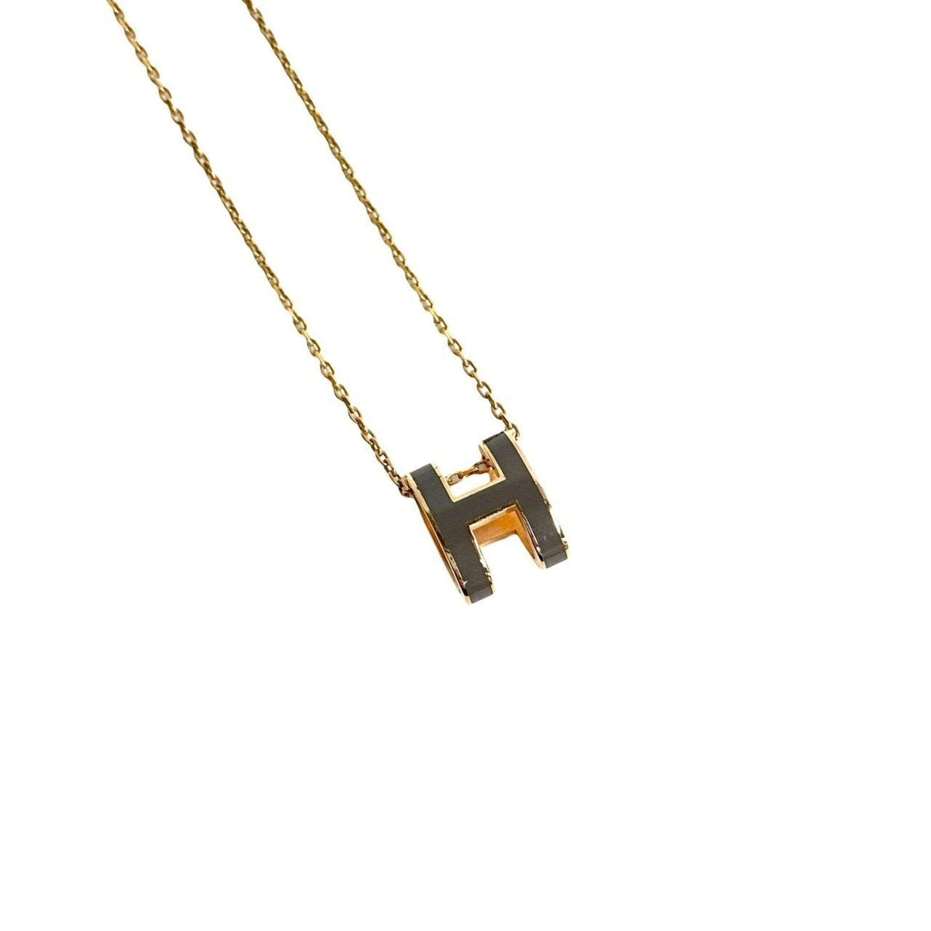 HERMES Pop H GP Logo Motif Necklace Pendant for Men and Women, Gold Gray, 97448