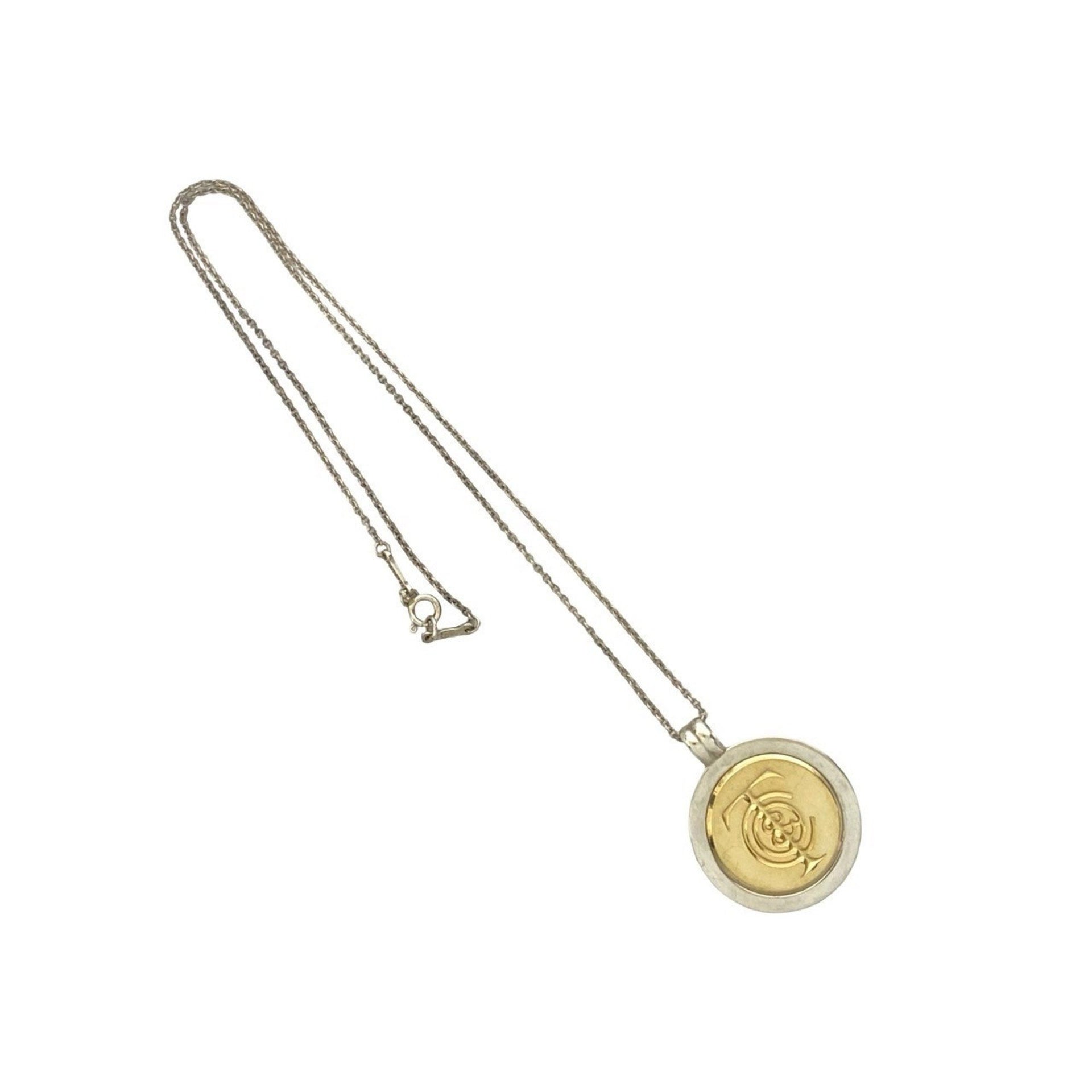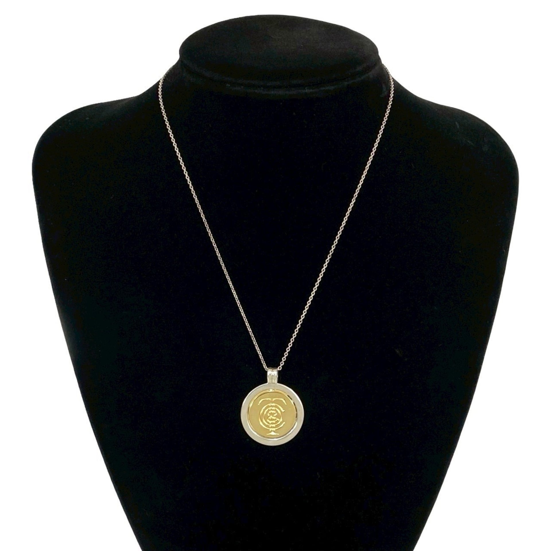 TIFFANY & Co. Tiffany Logo Coin Necklace in 925 Sterling Silver and 18K Gold with Chain Pendant, Gold, 28892
