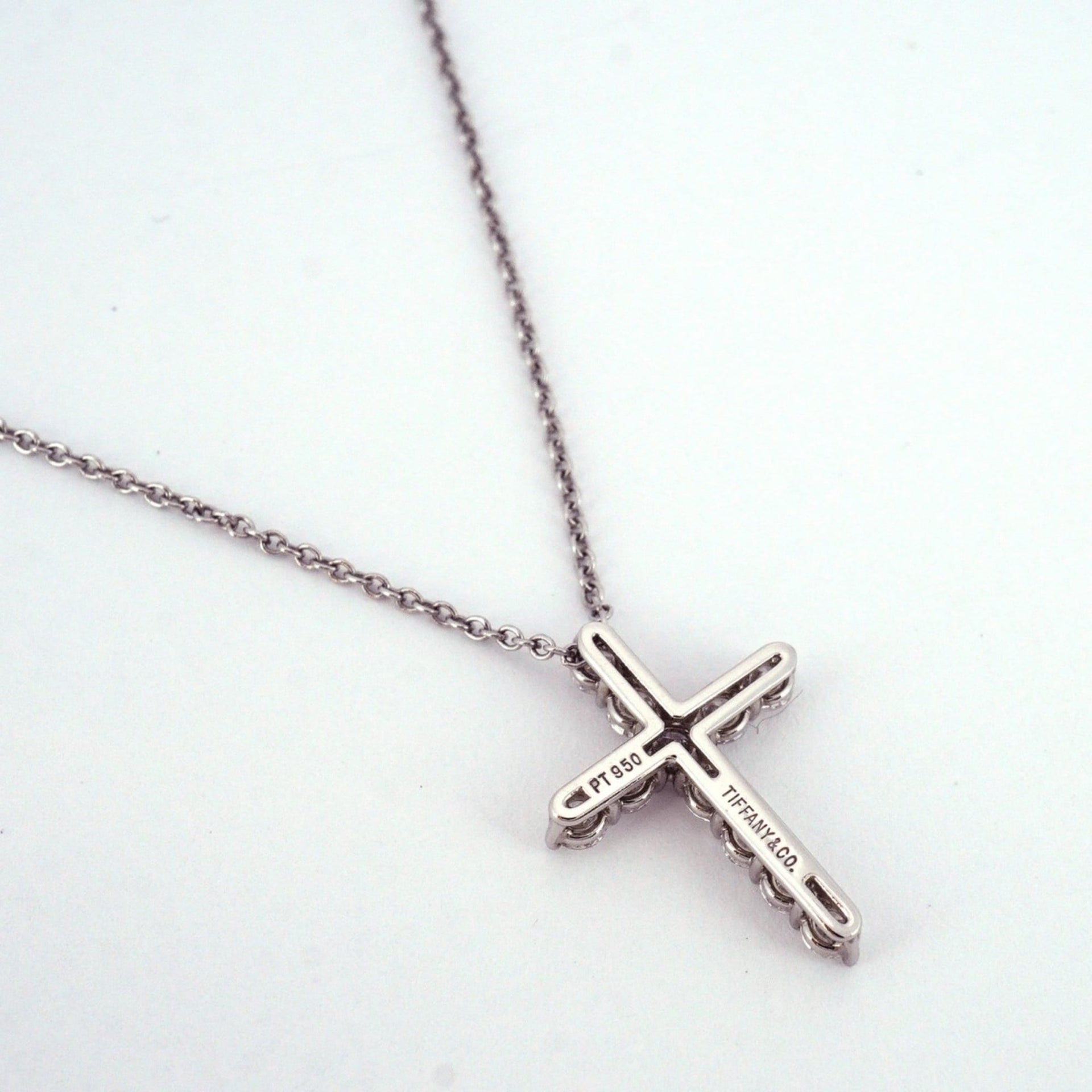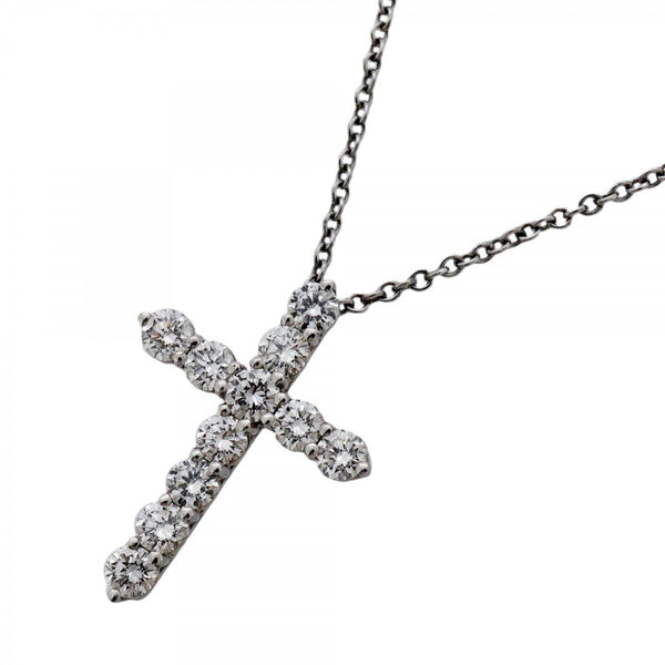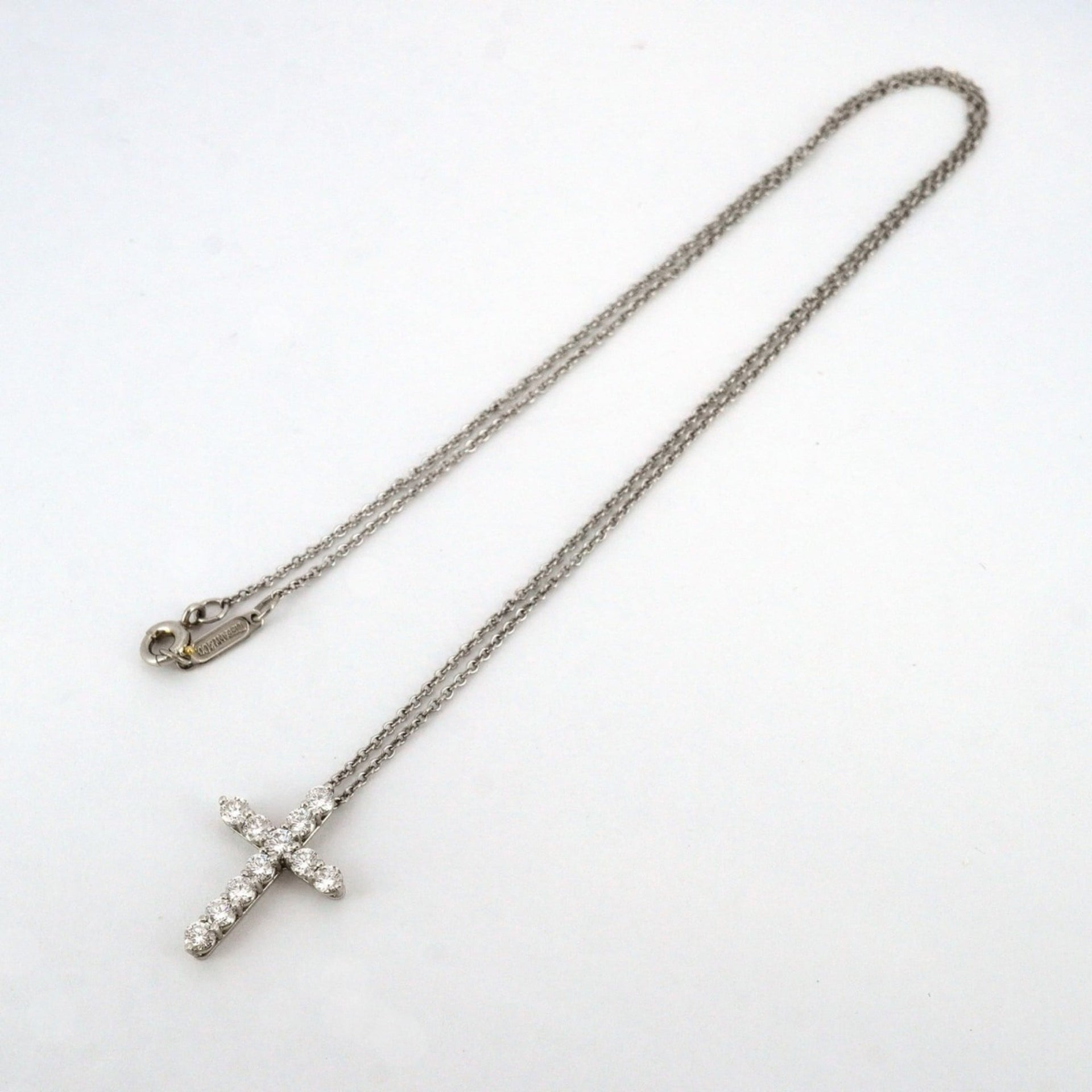 Tiffany Small Cross Necklace 11PD Pt950 Platinum Diamond Women\'s