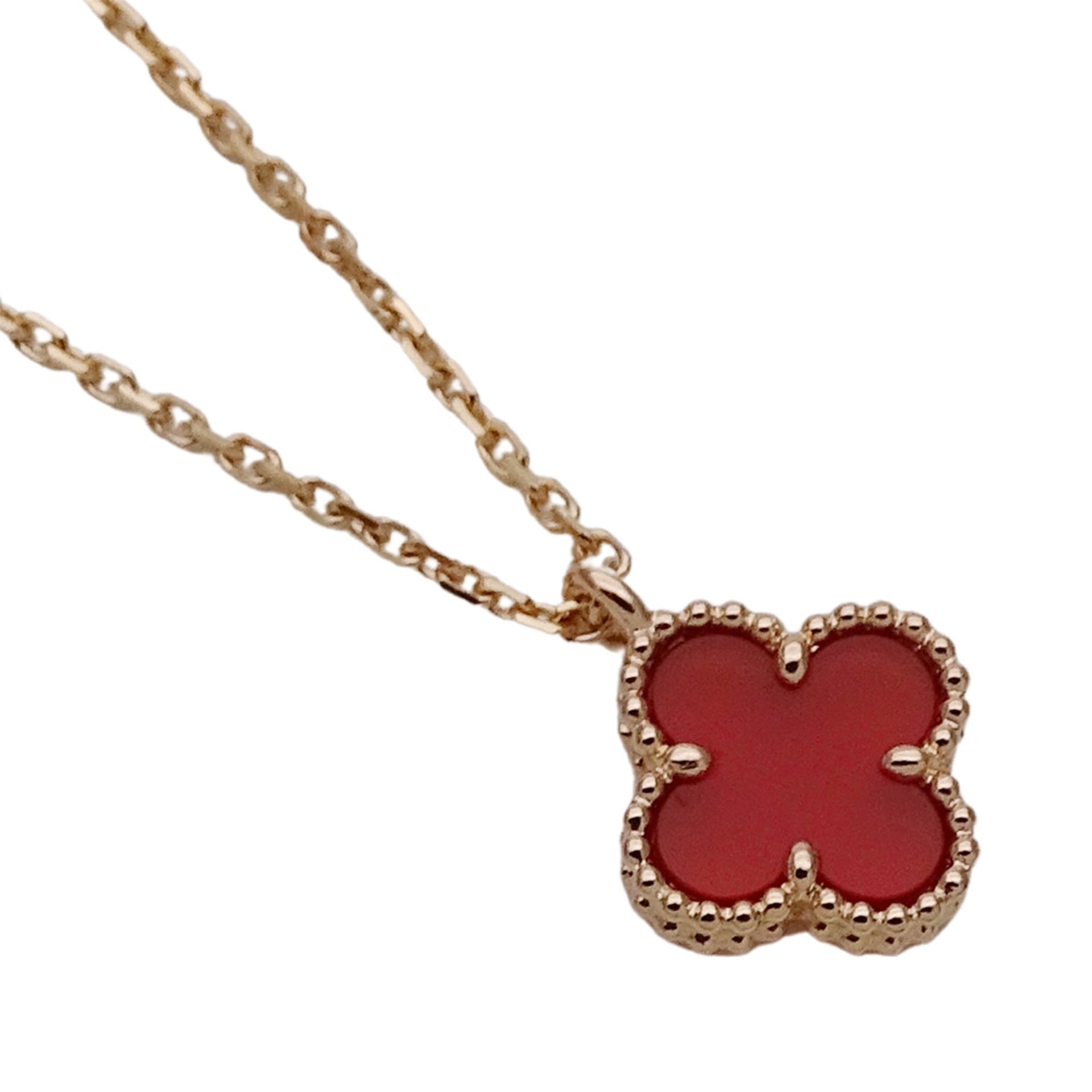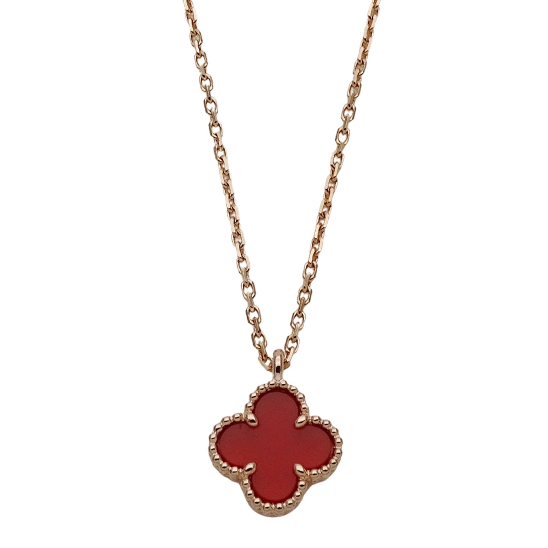 Van Cleef & Arpels Sweet Alhambra necklace for women, 750PG pink gold with carnelian, polished.