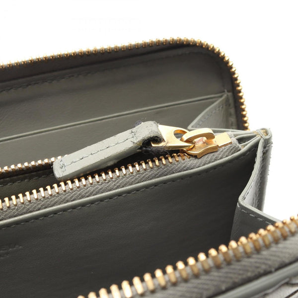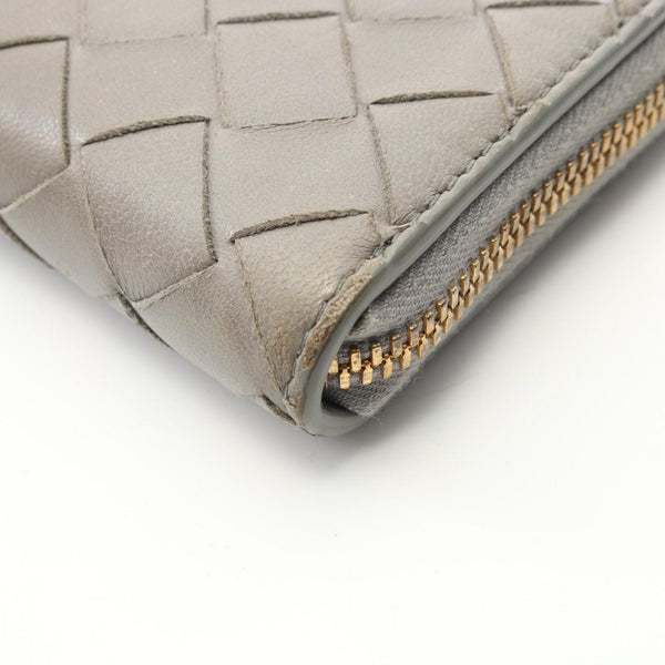 Bottega Veneta Intrecciato Leather Round Long Wallet for Men, Gray